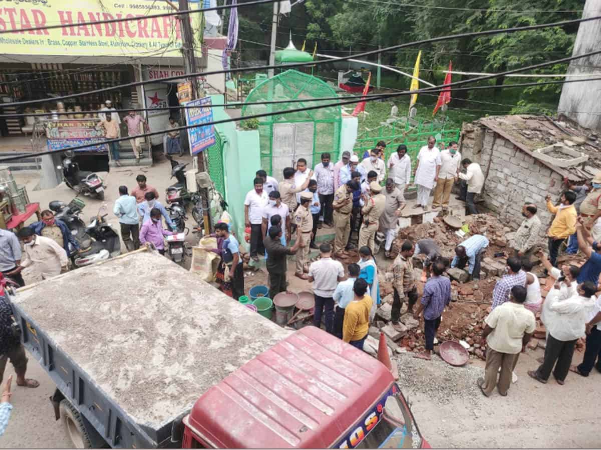 Hyderabad: Row over construction of public urinals at Feel Khana Muslim graveyard, Begum Bazaar sparked tension as locals opposed to the ongoing work.