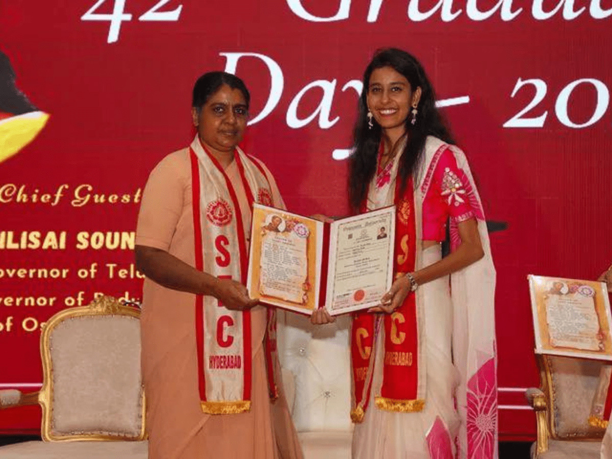 Telangana Governor Dr Tamilisai Soundararajan and Vanitha Datla, Vice Chairperson and Managing Director of ELICO Ltd, attended the occasion and presented the graduation diplomas.