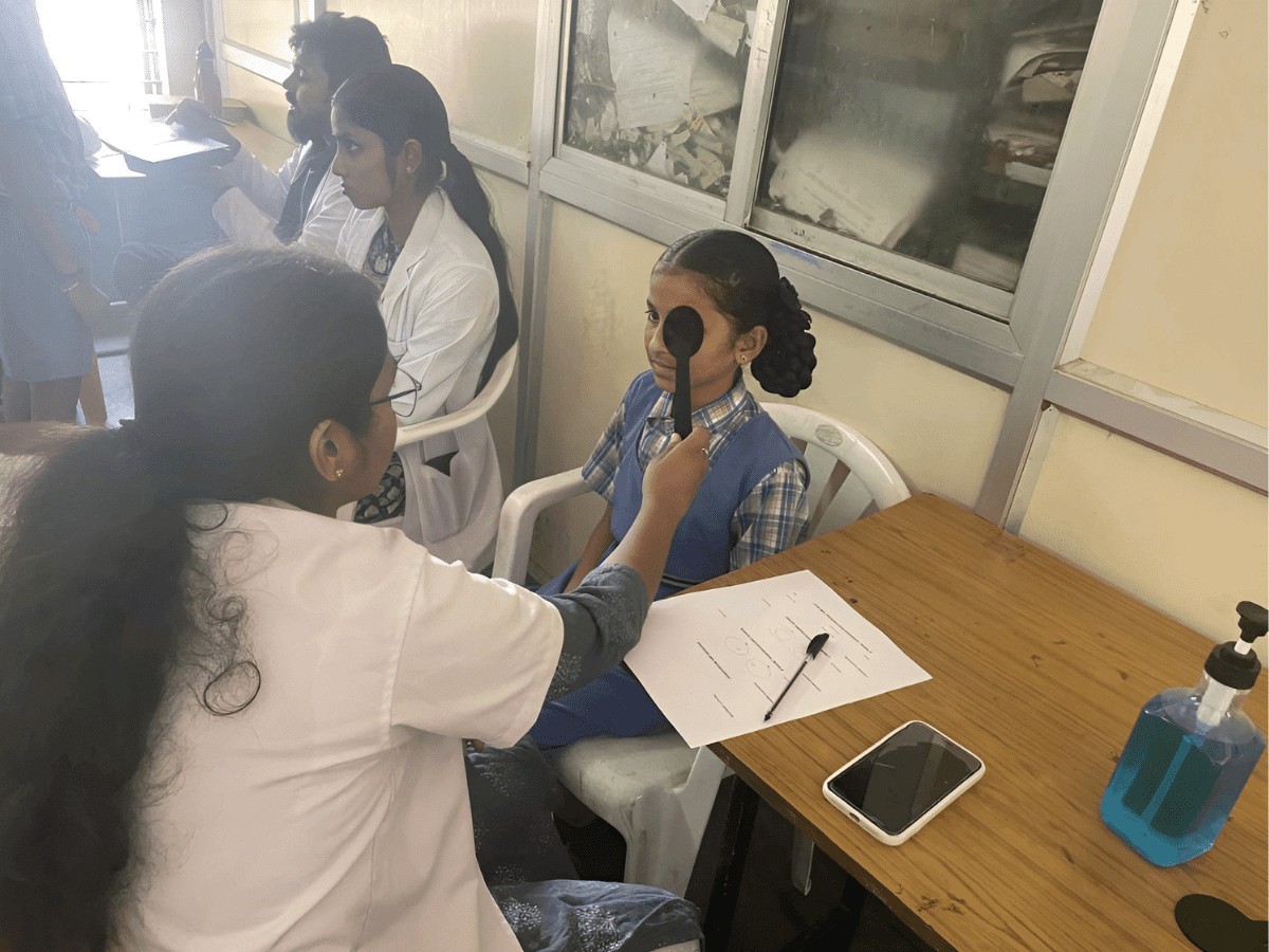 Dr. Konda Nagaraju, Bindu Reddy and Meghana Mashagalla along with a team of 15 optometry masters students screened the students and provided referrals as required. Six stations were set up for comprehensive eye screening which include registration, history taking, visual acuity for distance and near, objective and subjective refraction, binocular vision screening (colour vision, HBT, cover tests), torch light examination and management, a press note informed.