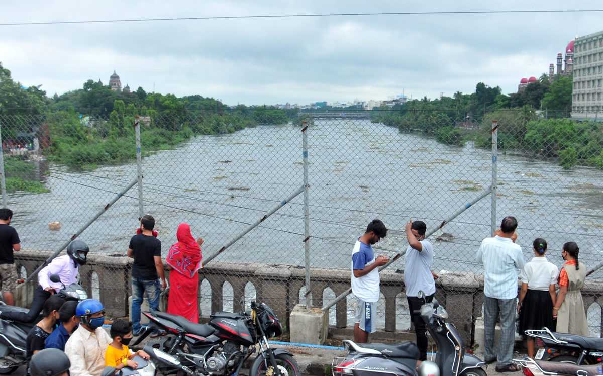 Hyderabad: After the incessant rains in the capital city of Telangana the Hyderabad’s Musi river is now brimming.