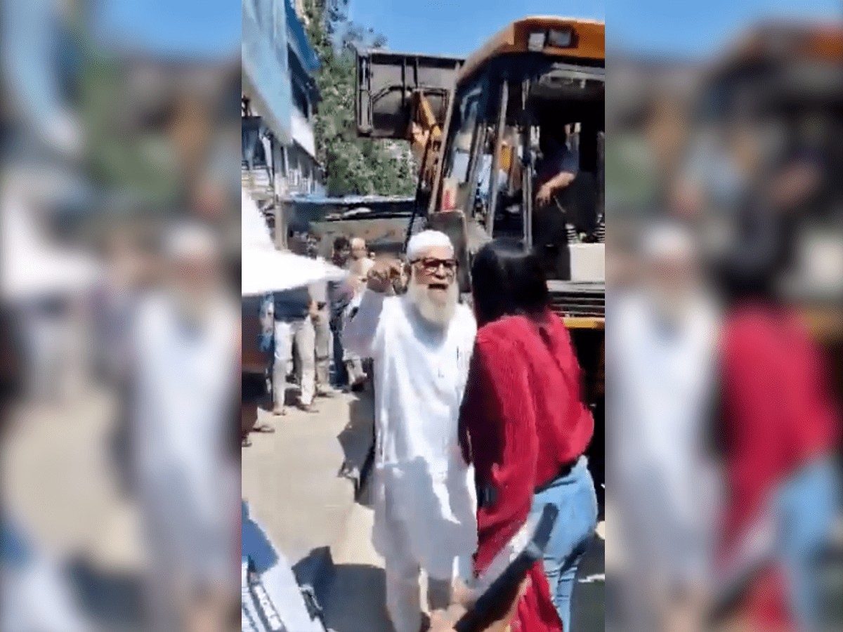 In the following video, the senior Muslim man, standing right in front of the bulldozer, is heard shouting, “Yeh hai Hindusthan ka kanoon. Yeh full dadaagiri chal rahi hai BMC ki. Hindustan ke kanoon ko raddi bana diya. Court ke order ko nahi maana jaa raha hai (This is the so-called law of India. This is BMC’s hooliganism. They have reduced India’s law and order system into dust. They are not following the court’s order).”
