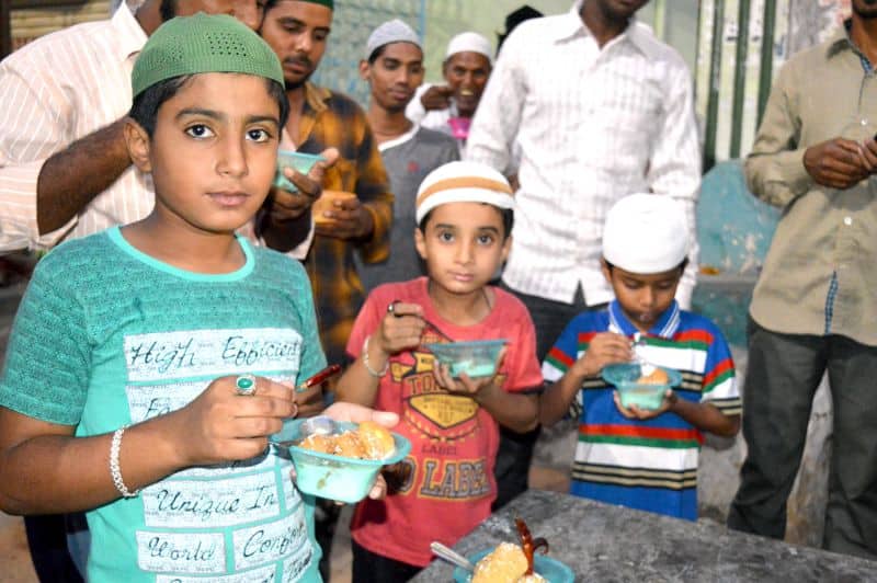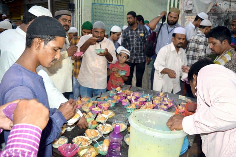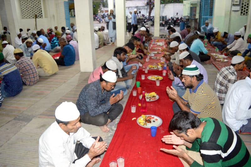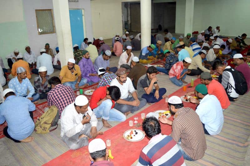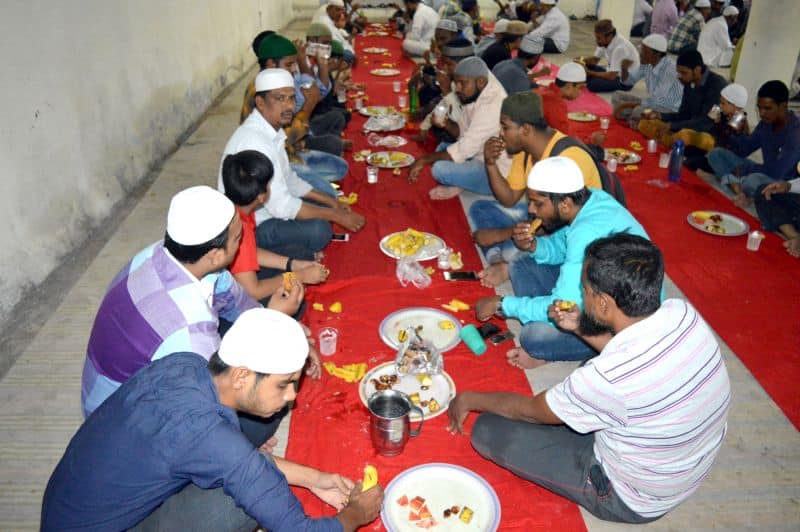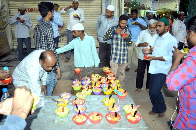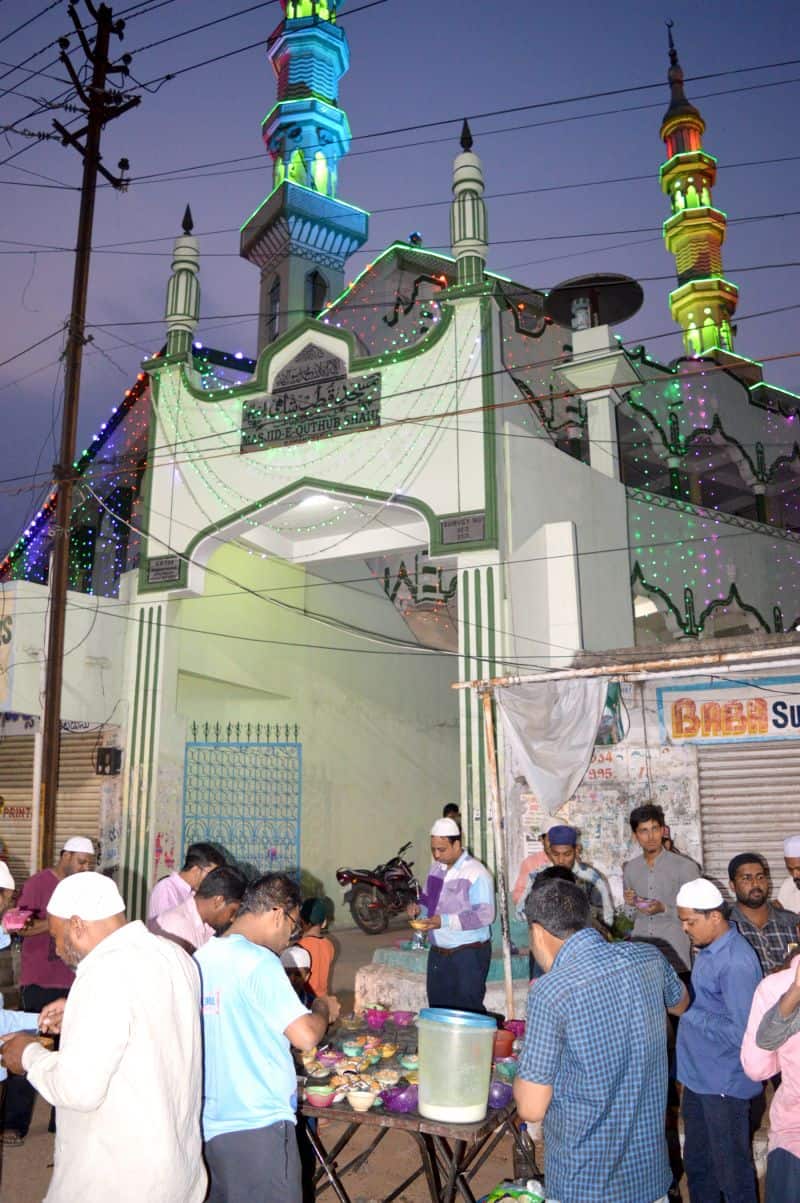 Muslims can be seen breaking their fast at Masjid-e-Qutubshahi, Ramanthapur on Thursday in Hyderabad. (Pics. Murli)