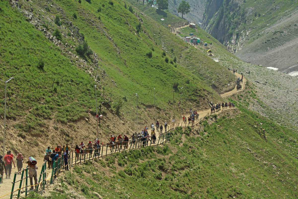 Srinagar: Amid tight security cover, pilgrims from different parts of the country visited Amarnath Cave Temples from Mahagunas Pass in Pahalgam as well as Baltal, Sonmarg.