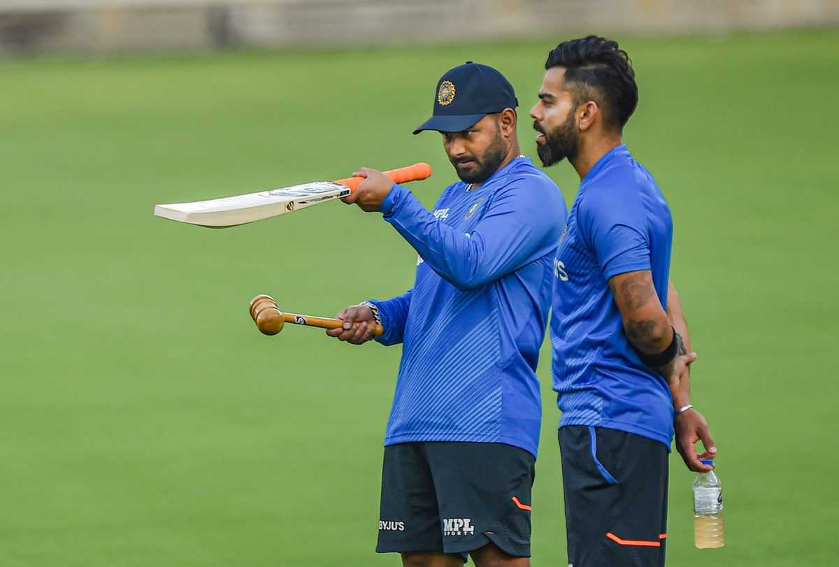 Ahmedabad: Indian cricketers Virat Kohli and Rishabh Pant during a training session, ahead of the first ODI cricket match between India and West Indies, at the Narendra Modi Stadium in Ahmedabad, Friday, Feb 04, 2022. (PTI Photo/Manvemder Vashist)