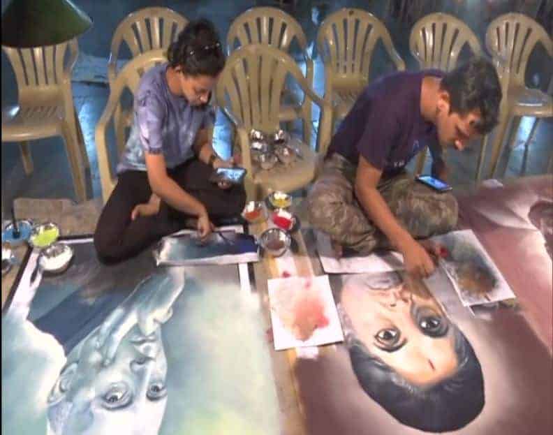 As a part of the Independence Day celebration, another exhibition was held where rangoli portraits of several national freedom fighters and leaders were being prepared and will be put for display.