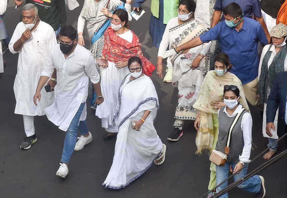 Before the commencement of the 7-km procession from Syambazar area in the northern part of the city, Banerjee blew a conch shell and a siren was sounded at 12.15 pm, the time when Bose was born on this day in 1897.