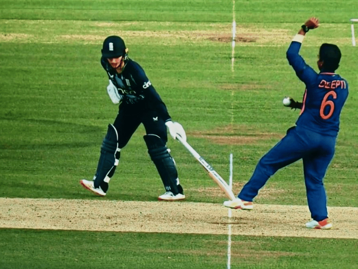 Dean was backing up when Sharma stopped in the middle of her bowling action to run out the batter for 47 runs with the target just 17 runs away. The dismissal is perfectly legal according to laws of the game.