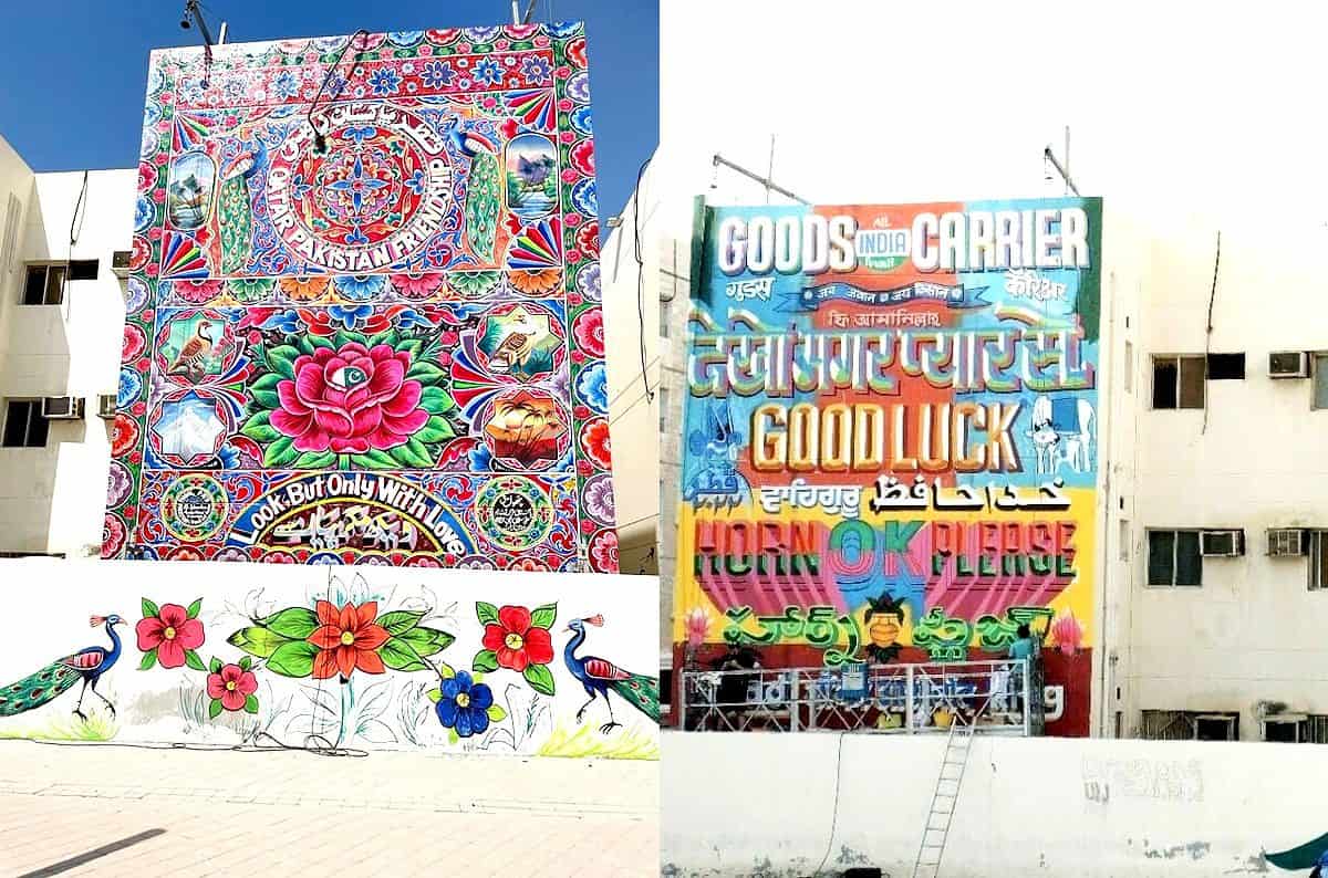 The 23X33 feet mural art stand adjacent to each other with the Indian mural displaying famous truck slogans like, “dekho magar pyaar se”, and Horn OK please.