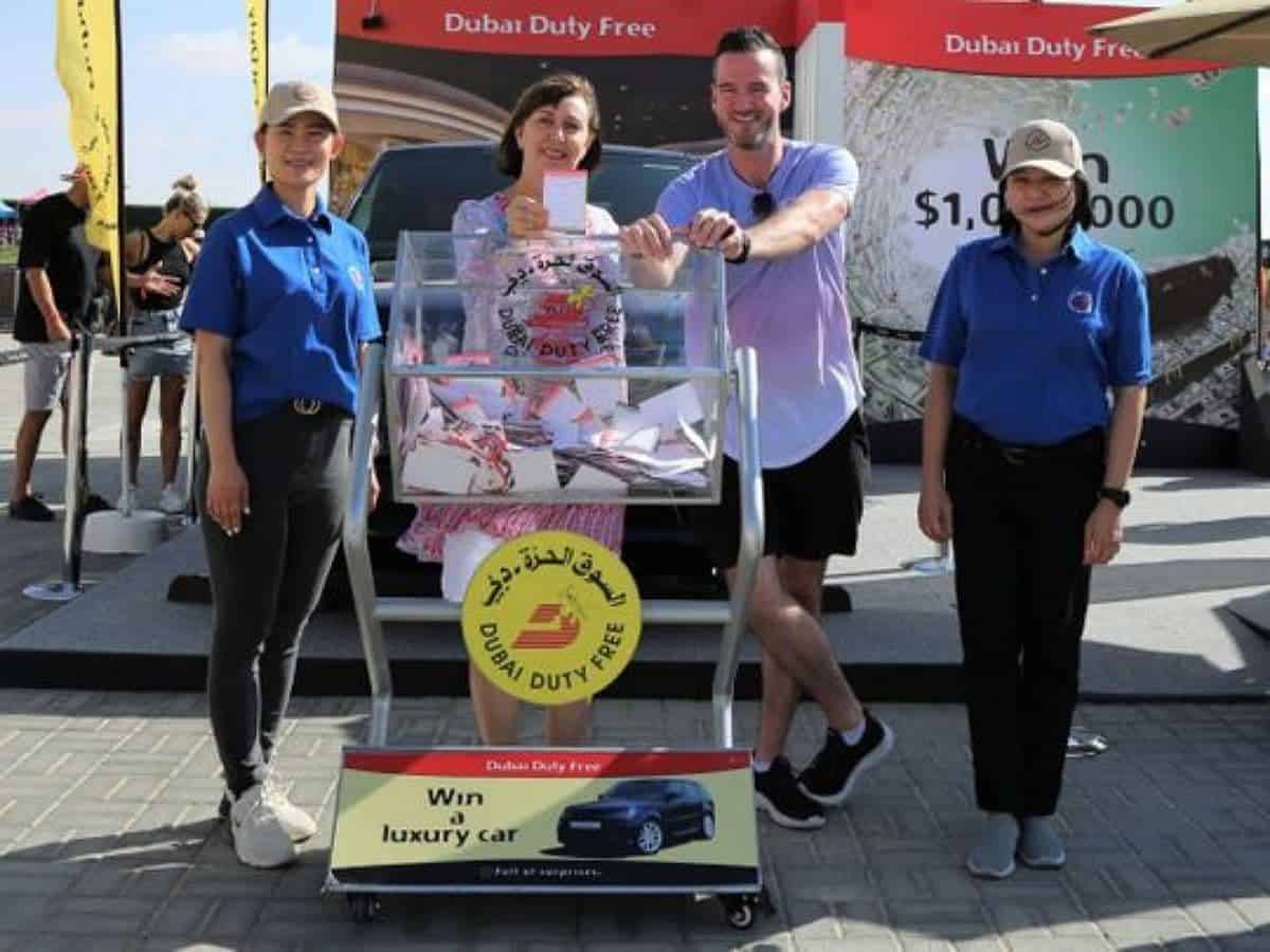 The Dubai Duty Free Finest Surprise draw was conducted by Sharon Beecham, Senior Vice President for Purchasing together with Jono, a Dubai 92 presenter.
