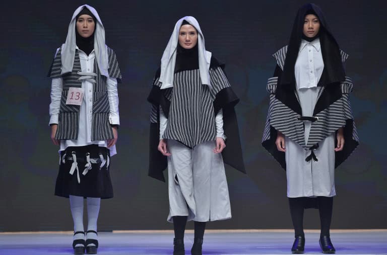 JAKARTA: A model presents creations by student designer Fatia Rahmawati on the first day of the Indonesia Muslim Fashion Festival in Jakarta, Indonesia, April 19, 2018.