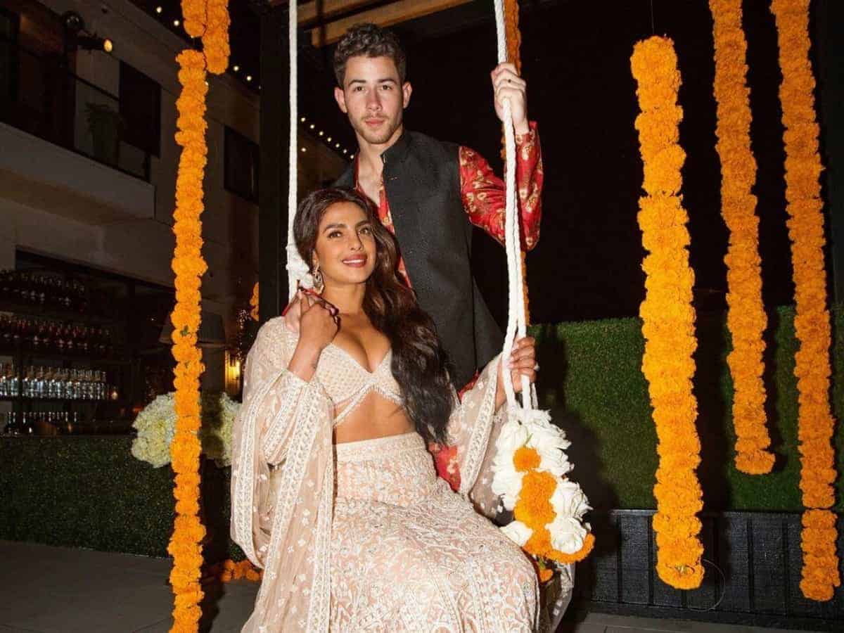 The couple were seen coordinating outfits well with each other. The former Miss Universe opted for a white sequenced lehenga choli while Nick was seen clad in a red kurta teamed with a black Nehru jacket.