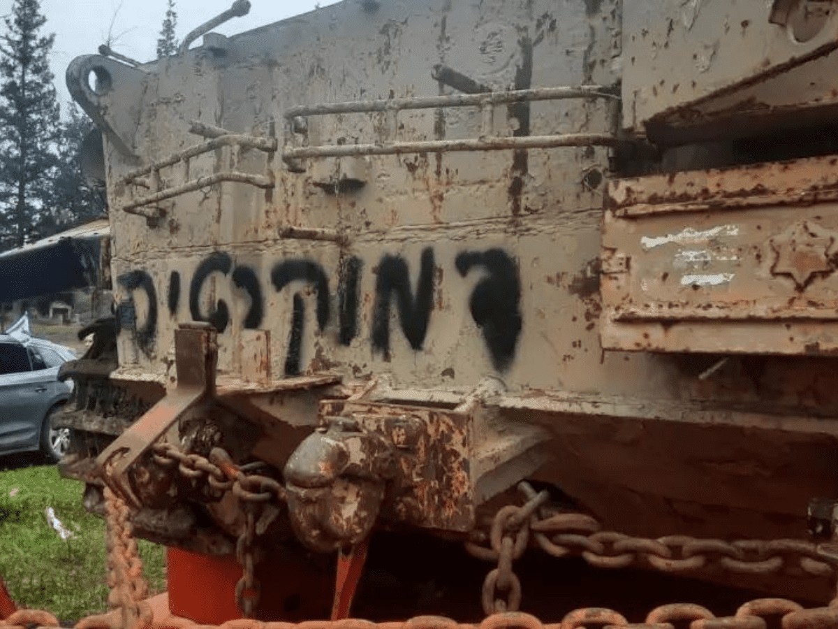 The tank that was stolen for a protest against the government and a copy of the Declaration of Independence on it, said a report from The Jerusalem Post (credit: ISRAEL POLICE SPOKESPERSON’S UNIT) on February 16.
