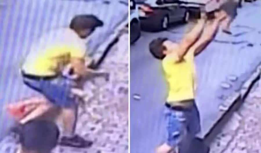 On the video, released this week, Mr. Zabaat quickly positioned himself and is seen trying to alert those around him, before stepping in to catch her as she hurtles towards the pavement.