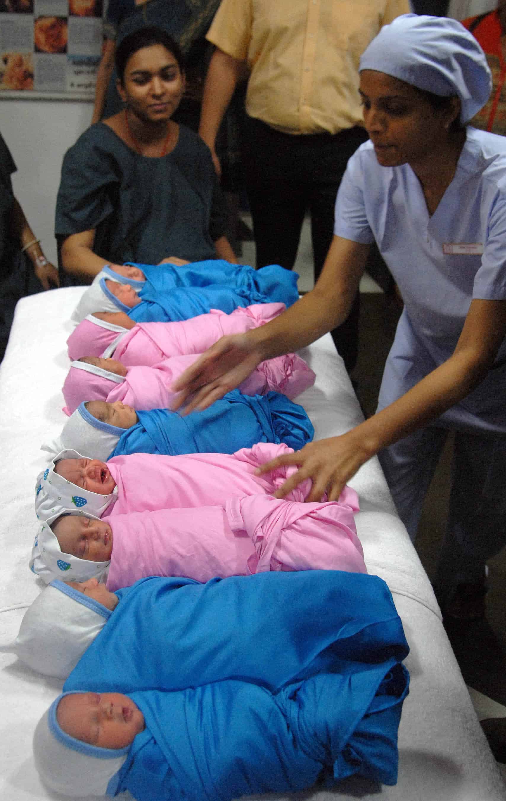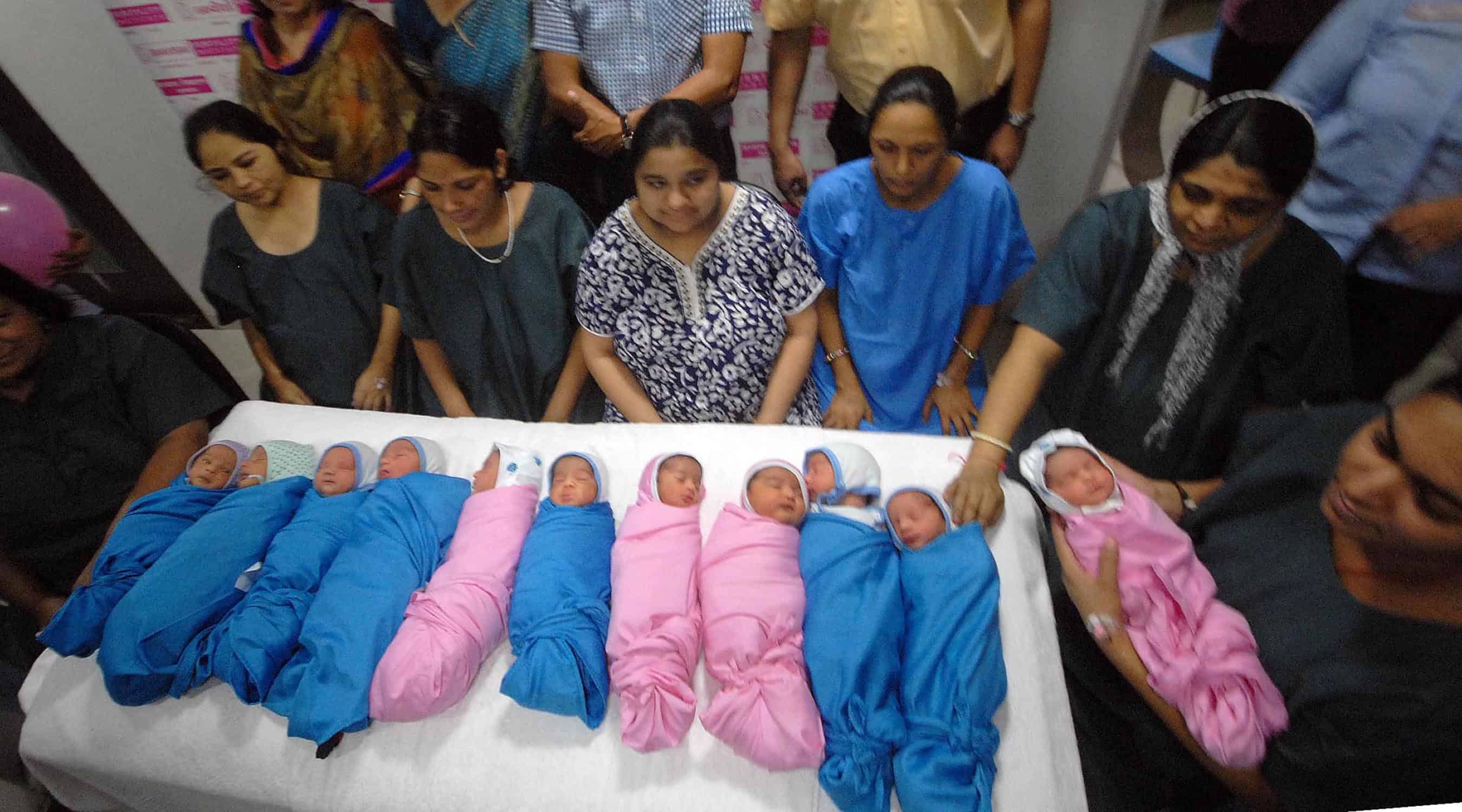 12 IVF babies were born to 8 mother on the auspicious day of Janmashtami at Bavishi’s fertility clinic in Ahmedabad on Friday.UNI PHOTO