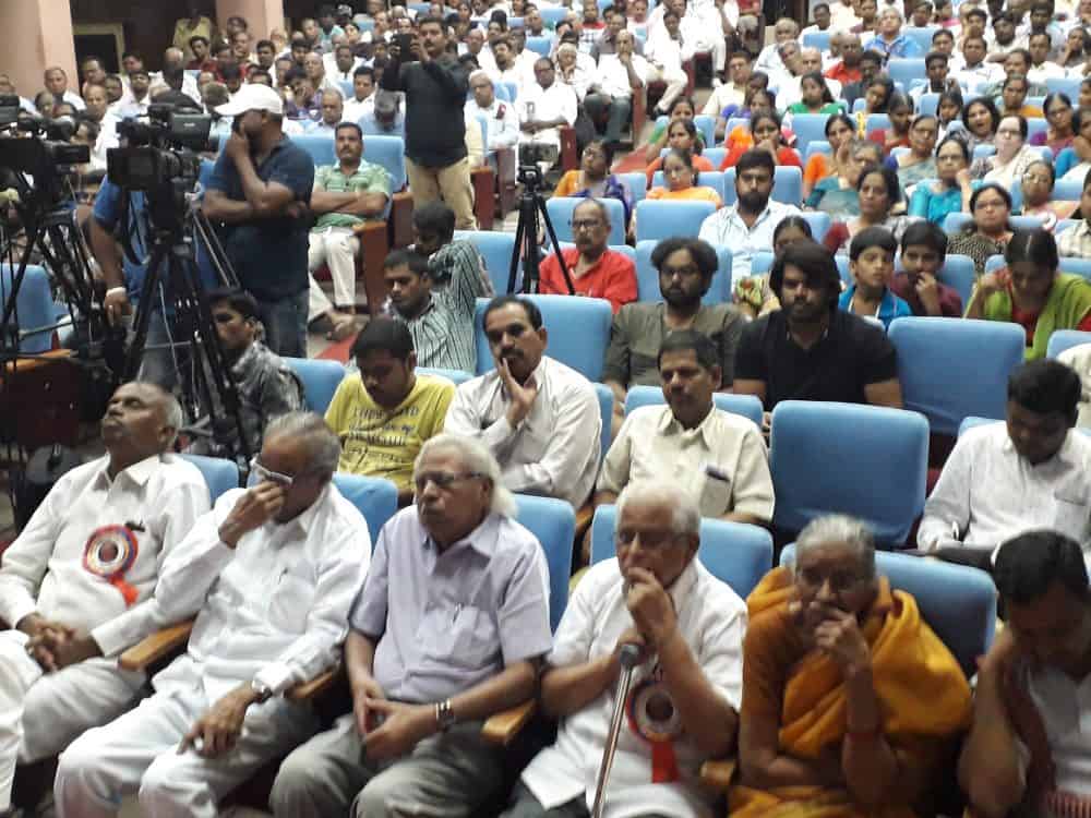 It has been observed for the first time in the history of India that when a person goes to the house of God for getting peace and tranquility, a team of cameramen also follows him to film the scenes of offering ‘Puja’ and ‘meditation’ so that cheap popularity could be achieved. With great regret, it is to be told that this act was not performed by no other person than our Prime Minister, Mr. Modi himself. These thoughts was expressed by noted social activist and historian, Mr. Ram Punyani delivering 34th Sundarayah Memorial Lecture at Sundarayah Bhavan, Bagh Lingampally. (Photo: Zabi)