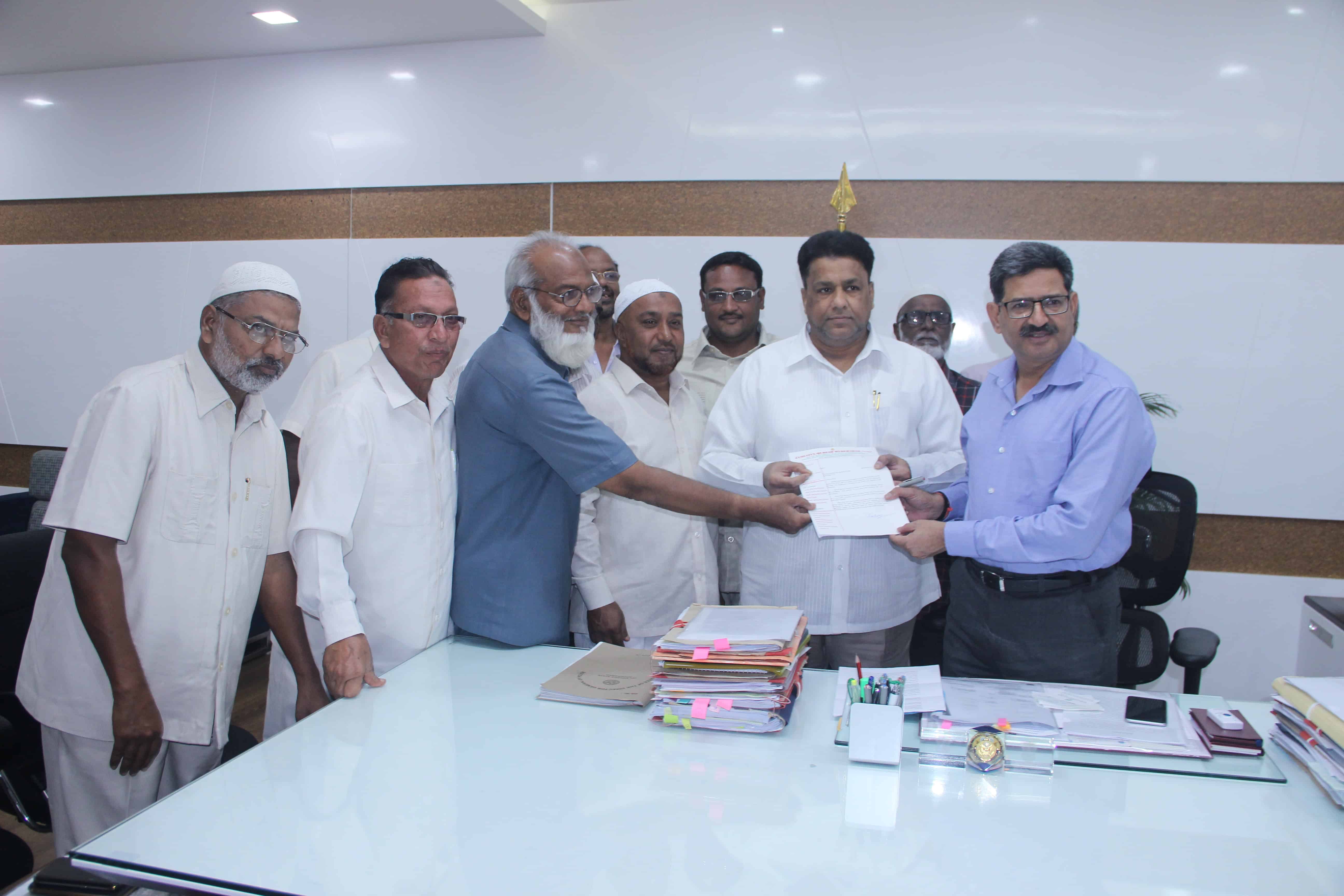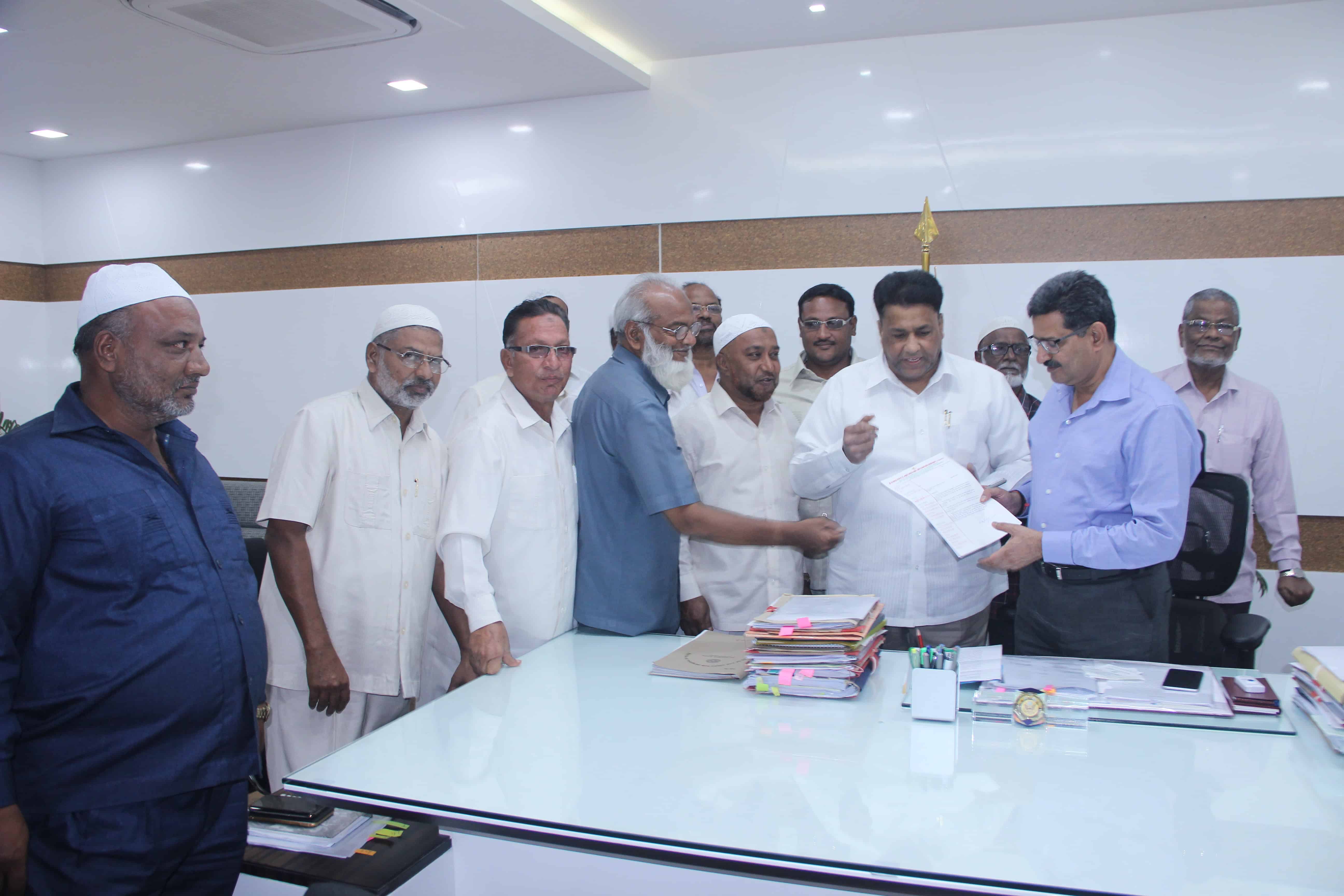 A delegation of Jamiatul Quresh led by its President Mr. Mohammed Saleem called on DGP Mr. Anurag Sharma to handover their representation against the atrocities being carried out in the name of “Gau Raksha” ahead of Eid-ul-Adha in Hyderabad. Photo:Laeeq