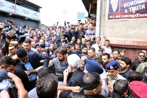 Srinagar: Jammu and Kashmir Lt. Governor (L-G) Manoj Sinha on Saturday joined mourners during the 10th Muharram procession in Srinagar’s Bota Kadal area.