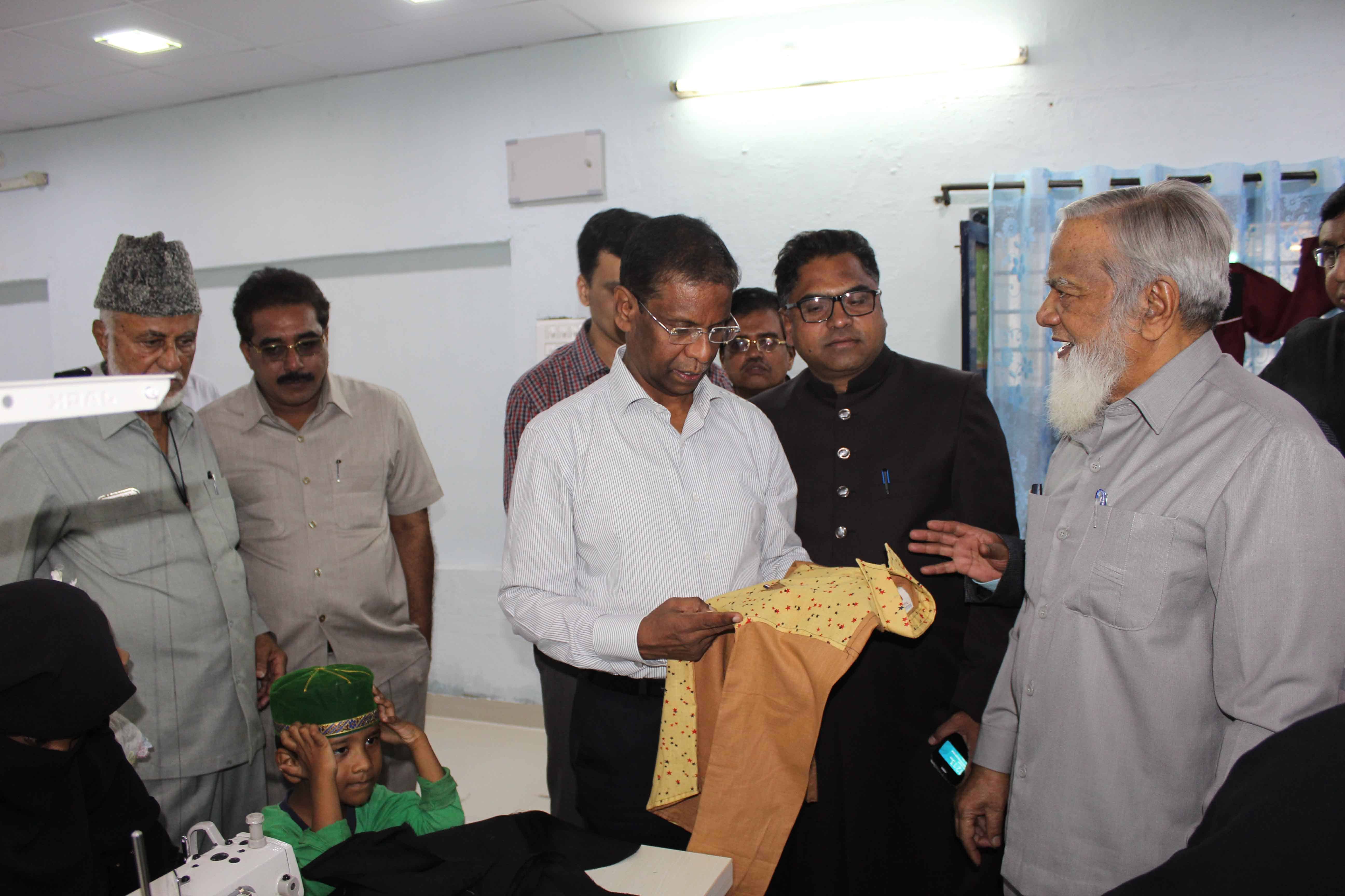 Director General of ACB, Telangna State Mr. A K Khan and MD Minority Finance Corporation Mr. Shafiullah was visited Khak e Taiba Trust’s Tailoring Center at Misri Gunj. (Photo: Zabi)
