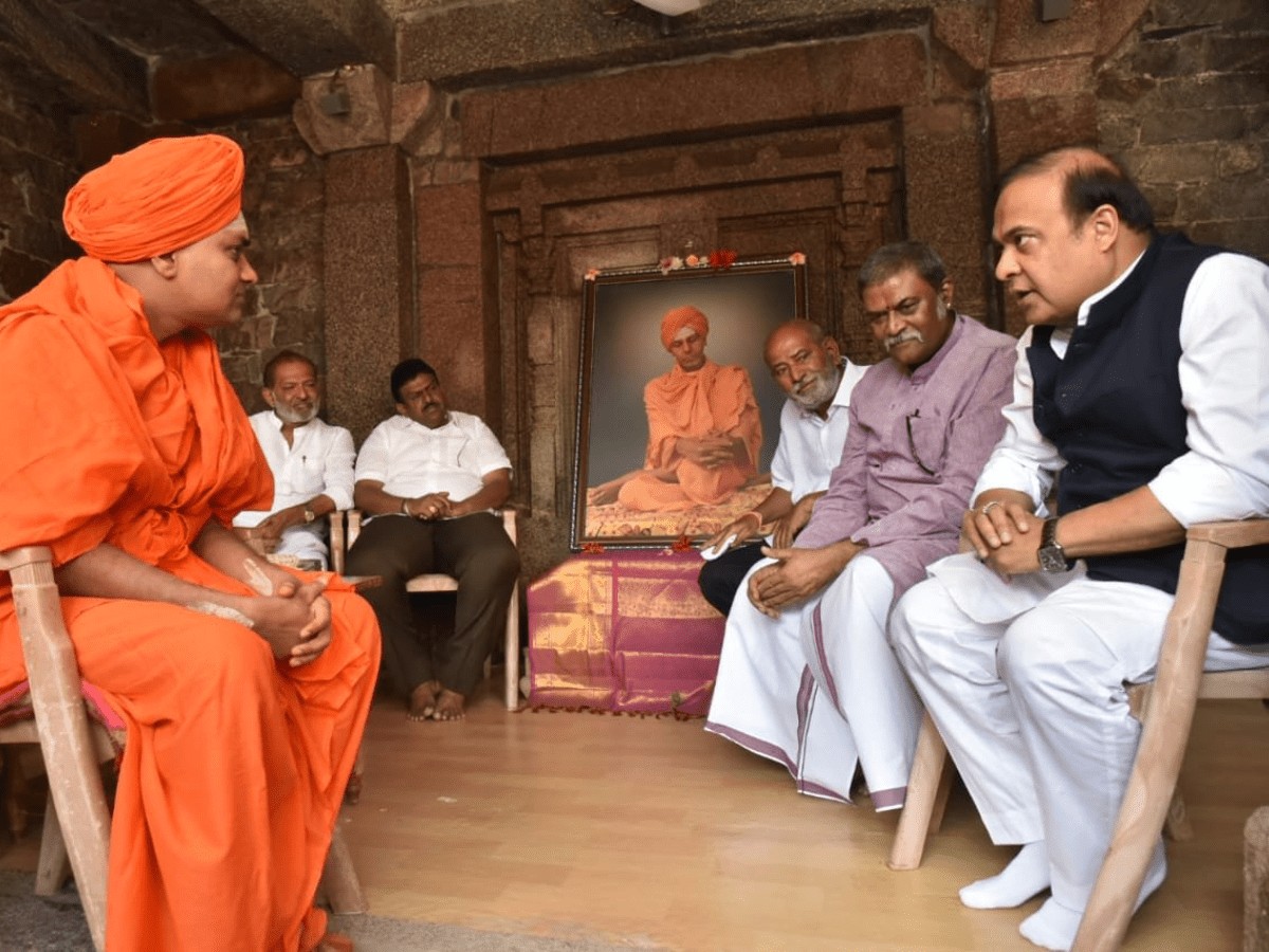 Himanta Biswa, who is in Karnataka to participate in the Vijay Sankalp Rath Yatra in Koppal, visited the famous local Gavi Siddeshwar Mutt and sought blessings of Gavisiddeshwar seer.