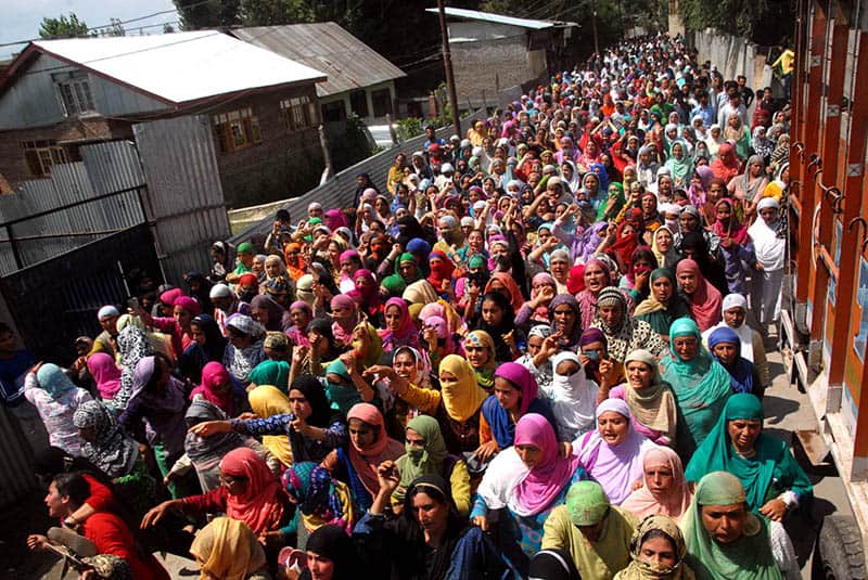 SRINAGAR, SEP 2 (UNI)- Women mourners accompany the funeral procession of 12-year-old Danish to Idgah cemetery who was drowned in Jehlum river as security force chased youths at Palpora-Noorbagh in Srinagar on Friday. UNI PHOTO-115U