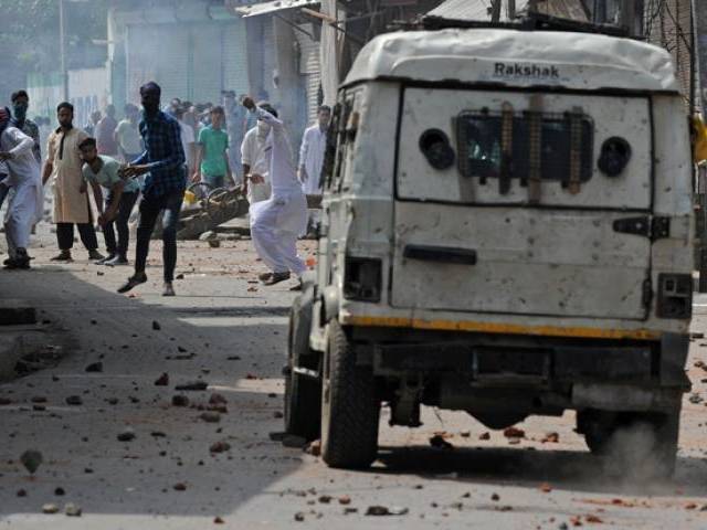 Indian Kashmiri protesters clash with Indian government forces during the Muslim festival of Eid-ul-Adha during a curfew in Srinagar on September 13, 2016. AFP PHOTO