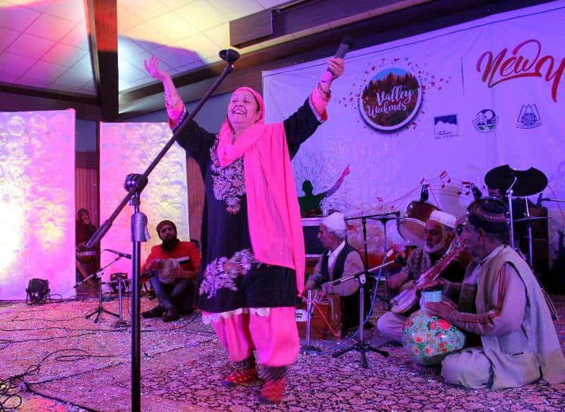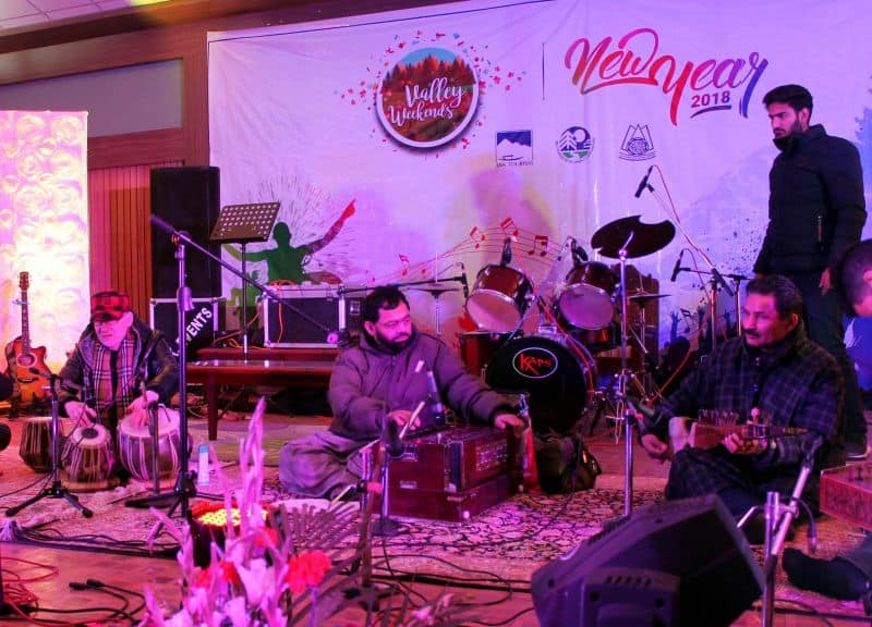 Pahalgam Jan 1: Kashmiri artists performing during New Year event at Pahalgam Club organised by Pahalgam Development Authority on the eve of New Year 2018.UNI