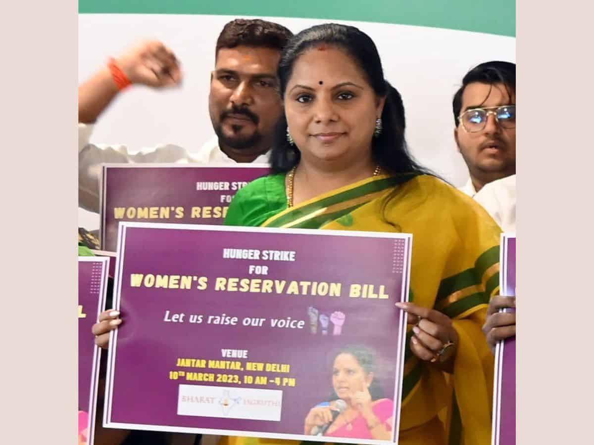 Hyderabad: Bharat Rashtra Samithi (BRS) MLC and Bharat Jagruthi founder K Kavitha on Thursday announced a hunger strike at Jantar Mantar, Delhi on March 10 for Women’s Reservation Bill.