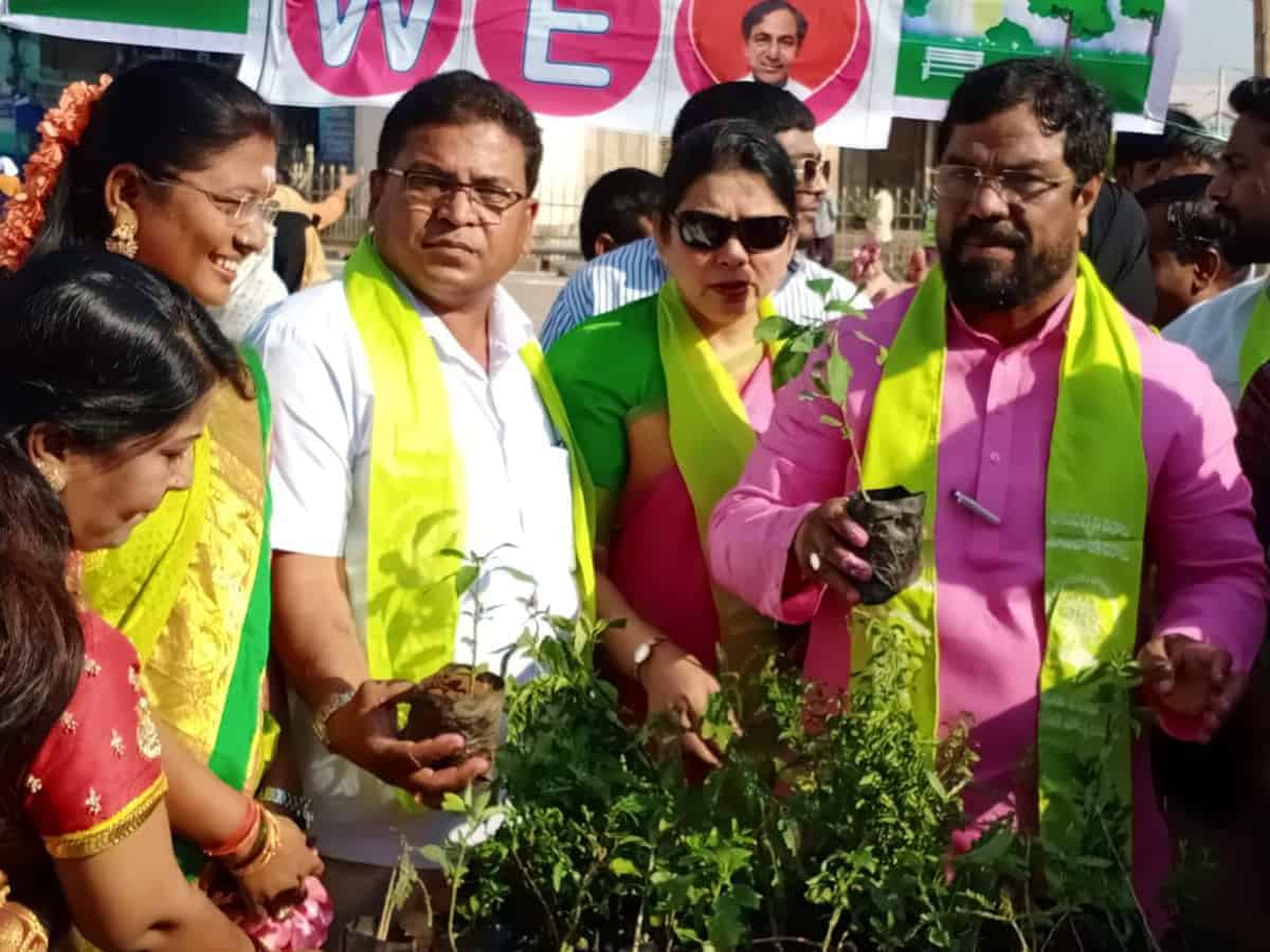 Hyderabad: On the occasion of Telangana’s Chief Minister KCR’s birthday, a cake was cut and plants were distributed to attendees at Charminar. TRS party member Inayat Ali Baqri who contested against current MIM Bahadurpura MLA and other leaders like Corporator Ahmed Nagar and Mr. Syed Lateef Ahmed were present during the occasion.