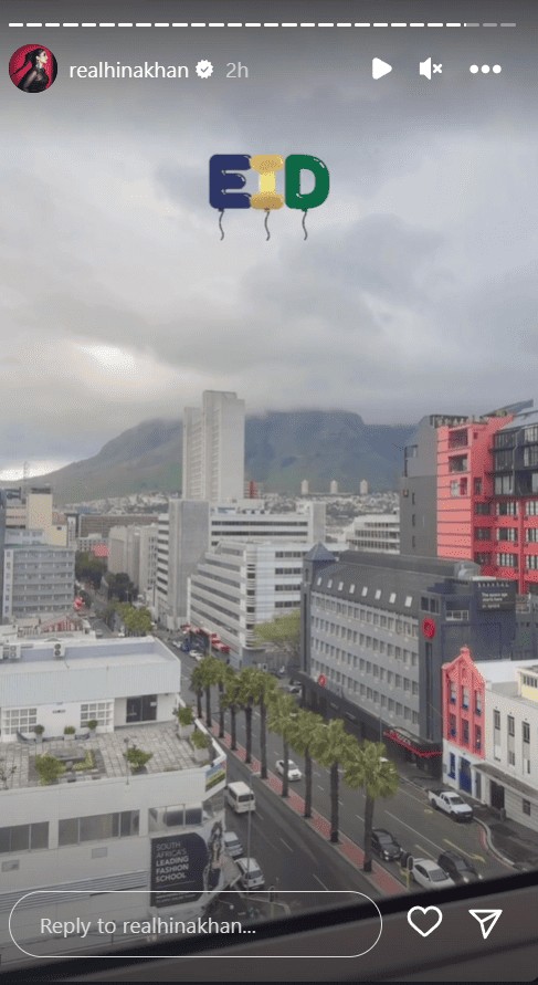 Hina posted a story on her Instagram account from her hotel room and captioned it with “Eid”. The next story she posted was a screenshot of her chat with her mother wishing the actress at the festival. The texts read, “Eid Mubarak Hina Ji” and “I miss you sooooo much.” The actress captioned the picture with “MAA” with a heart emoji and “I MISS U TOO MUMMA” with a smile emoji.