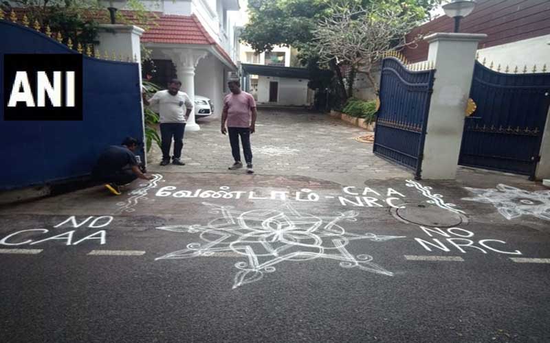 Chennai: After slogans, placards, processions and meetings, DMK were now protesting against the Citizenship Amendment Act (CAA) and National Register of Citizens (NRC) by using the traditional Tamil ‘kolams’.