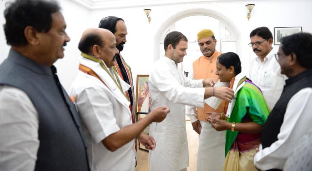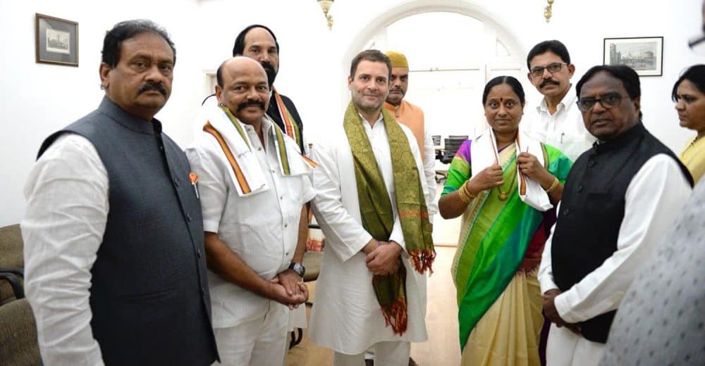 TRS MLA in the dissolved Telanganaassembly Konda Surekha and her husband MLC Konda Muralidhar Rao joined the Congress Wednesday. They joined Congress in the presence of party president Rahul Gandhi in New Delhi. Telangana Pradesh Congress Committee Chief Utam Kumar Reddy, Ex President Punalala Laxmaiah, LoP in TLC Shabbir Ali, Former State Waqf Board Chairmen Moulana Khusroo Biyabani, S K Ratanam can also be seen. (Photo: Zabi)
