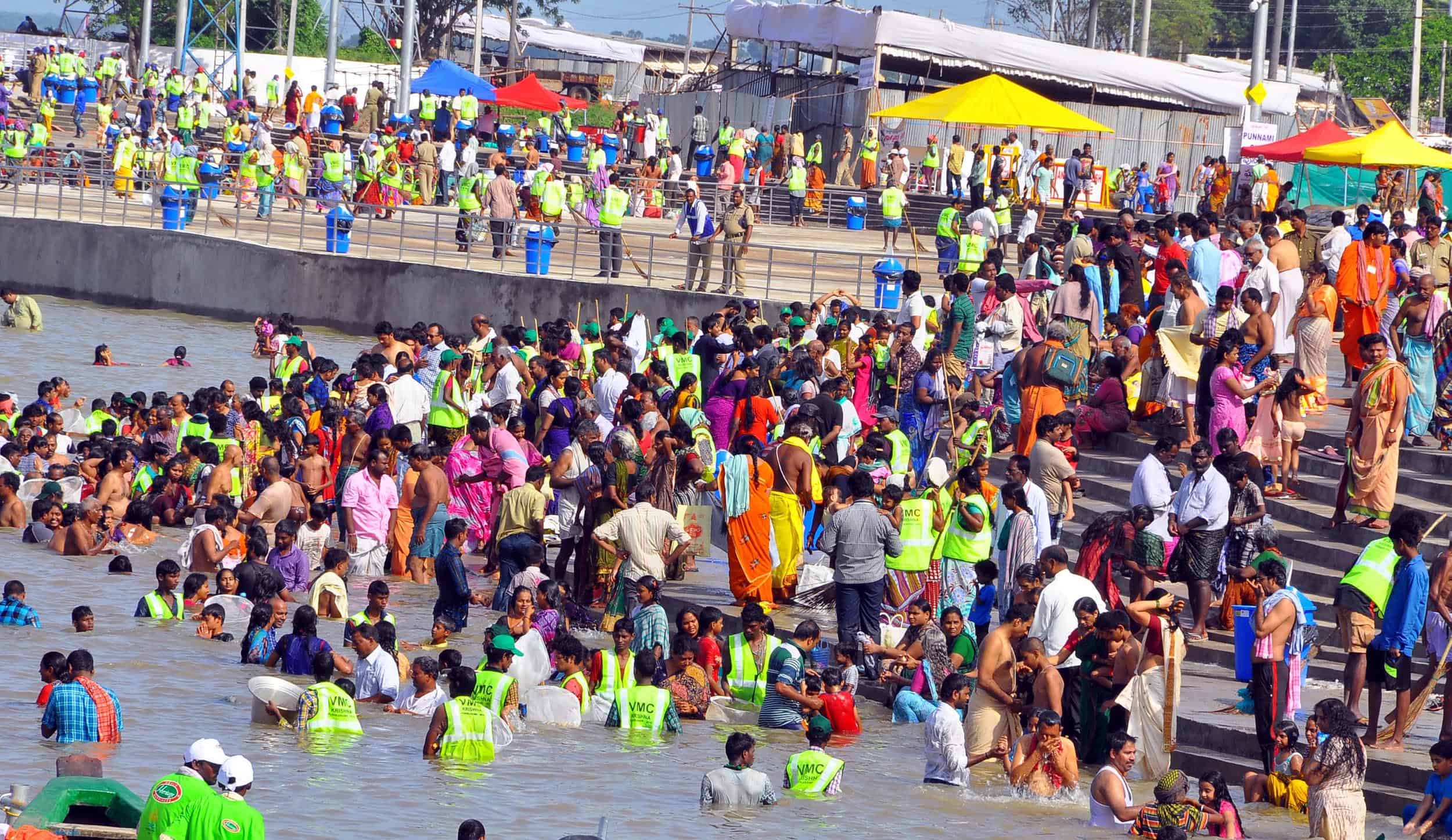 VIJAYAWADA, AUG 12 (UNI)- Devotees taking holy dip in Krishna river on the first day of 12-day Krishna Pushkaram in Vijayawada on Friday. UNI PHOTO-130u