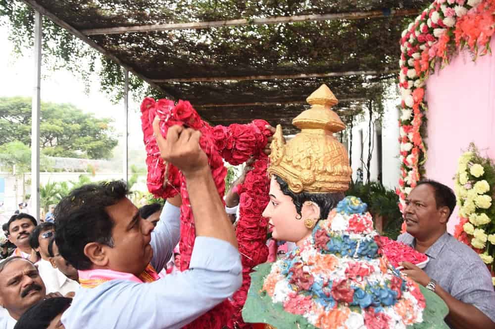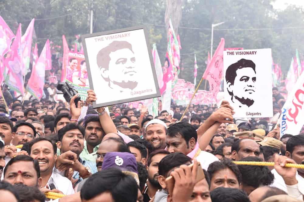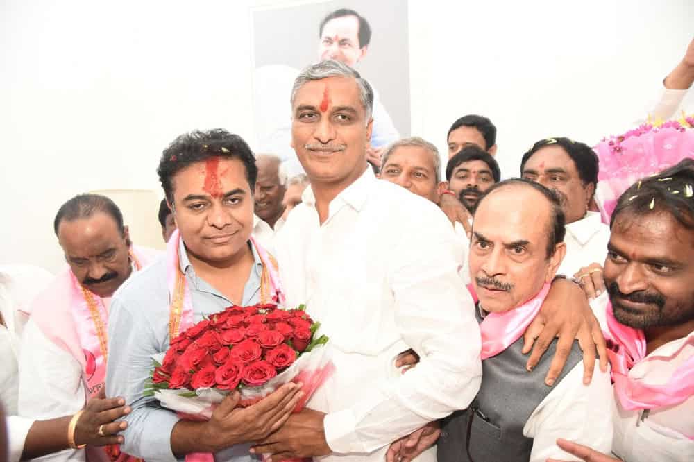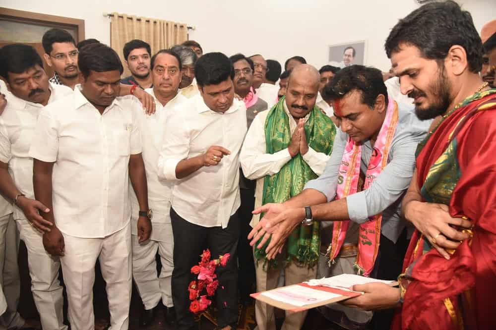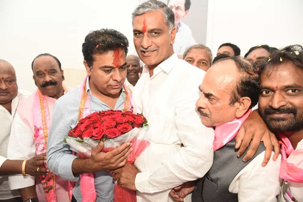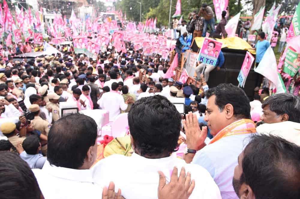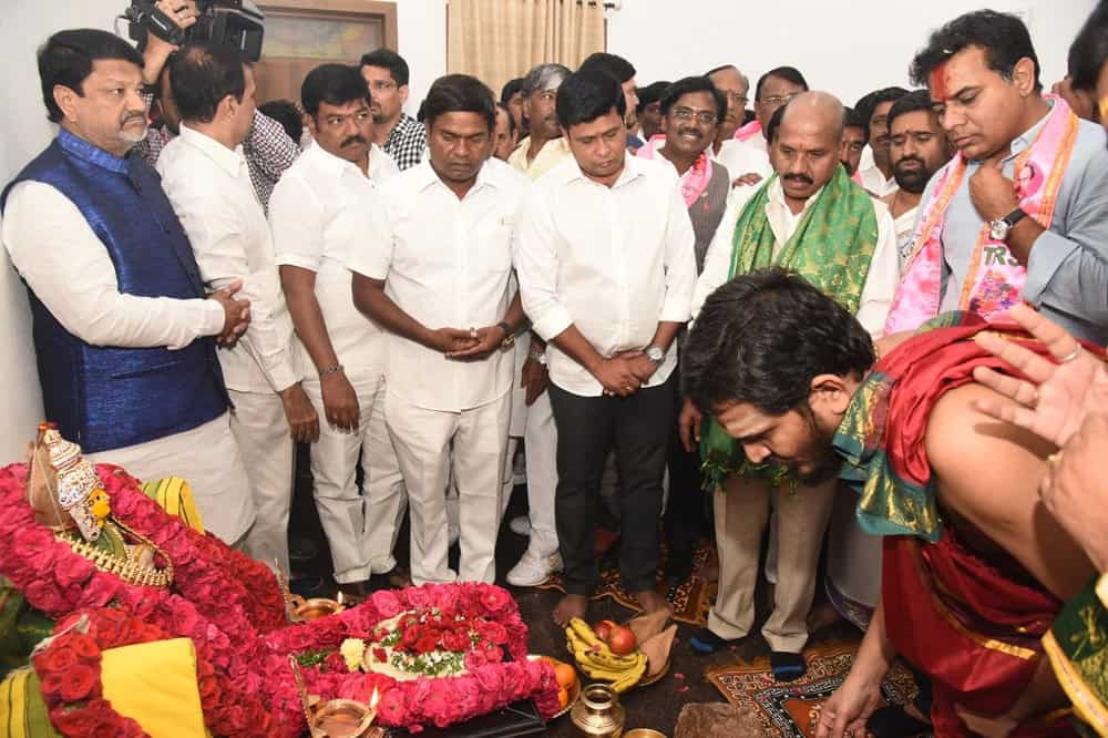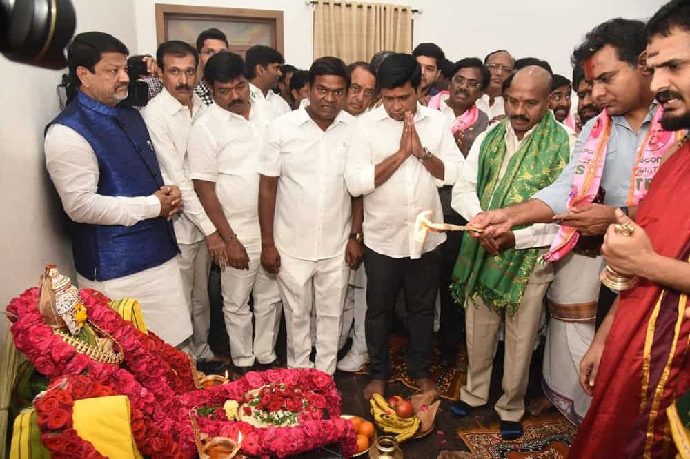 KT Rama Rao took charge as the Working President of Telangana Rashtra Samithi at his chambers in Telangana Bhavan here on Monday, amidst much fanfare. Scores of TRS leaders and activists turned the roads leading to Telangana Bhavan into pink colour, even as they turned jubiliant during the celebrations. Before heading out to Telangana Bhavan, Rama Rao took the blessings of his parents Chief Minister K Chandrashekhar Rao and Shobha at Pragathi Bhavan. (photo: Zabi)