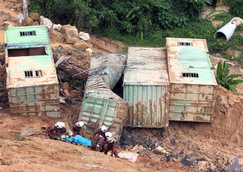 Landslide in Malaysia October 20, 2018 by arshad PENANG: Rescuers workers at the site of a landslide, in Penang, Malaysia on Friday, three people died one person was injured in this landslide.[source_without_link] UNI [/source_without_link]