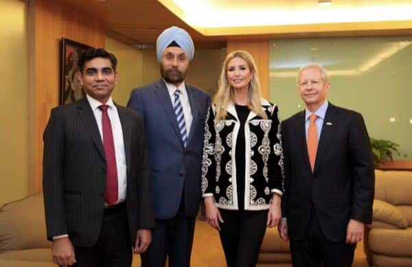 Advisor to @POTUS @IvankaTrump met with Minister of External Affairs @SushmaSwaraj at #GES2017 in Hyderabad. (Photo: @MEAIndia) pic.twitter.com/wga8wQsbXI