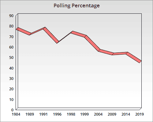 Since 1984, the constituency had never recorded polling percentage less than 50.