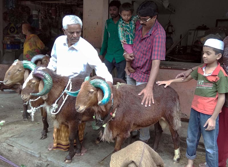 HYDERABAD, SEP 11 (UNI):- People buying goats ahead of Eid-ul-Azha festival in Hyderabad on Sunday. UNI PHOTO-32U