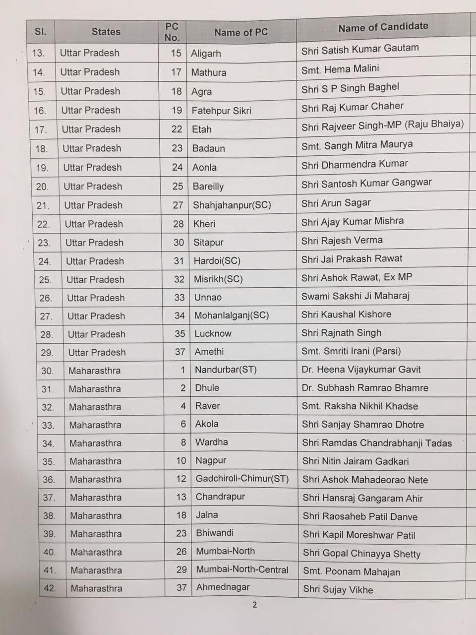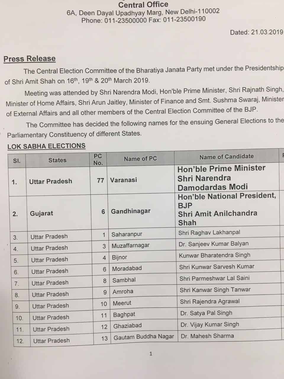 New Delhi: The Bharatiya Janata Party (BJP) on Thursday evening declared 184 candidates including Prime Minister Narendra Modi, party chief Amit Shah for the ensuing Lok Sabha polls. Muslim candidates find the place in the party’s first list.
