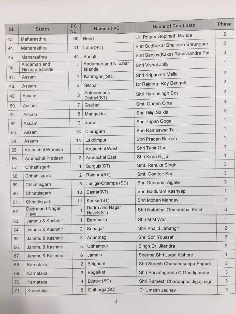 BJP has field Shri M M War from Baramulla, Shri Khalid Jahangir from Srinagar, Shri Sofi Youssaf from Anantnag. On the party’s ticket, Shri Abdul Khader to contest from Lakshadweep.