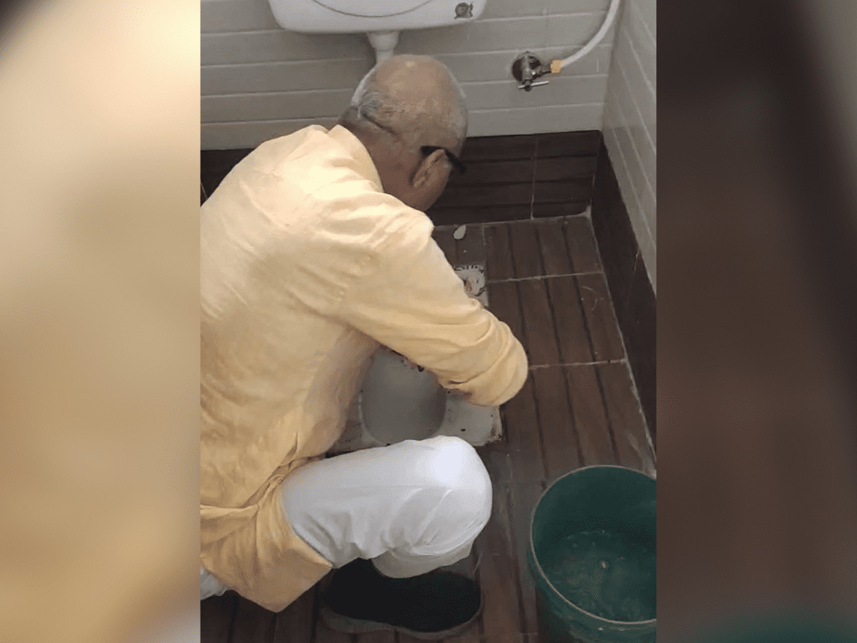 Rewa: In a video that has gone viral on social media, Bharatiya Janata Party’s Lok Sabha member from Madhya Pradesh’s Rewa, Janardan Mishra, can be seen cleaning the toilet of a girls’ school in his constituency with his bare hands.