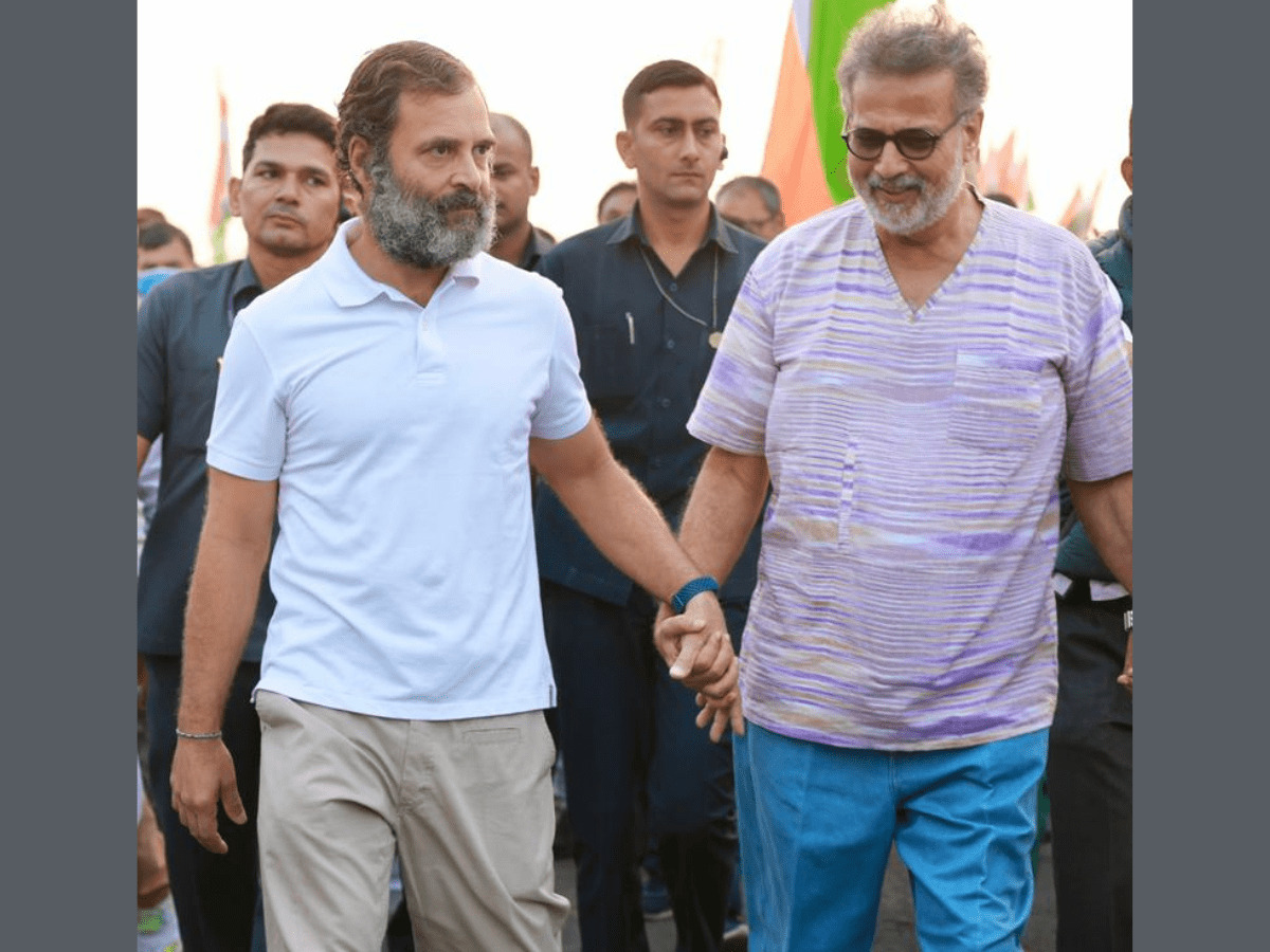 Shegaon: Mahatma Gandhi’s great grandson, Tushar Gandhi, joined Rahul Gandhi in the Bharat Jodo Yatra at Shegaon in Buldhana district of Maharashtra on Friday morning, with the Congress hailing his participation as “historic”.