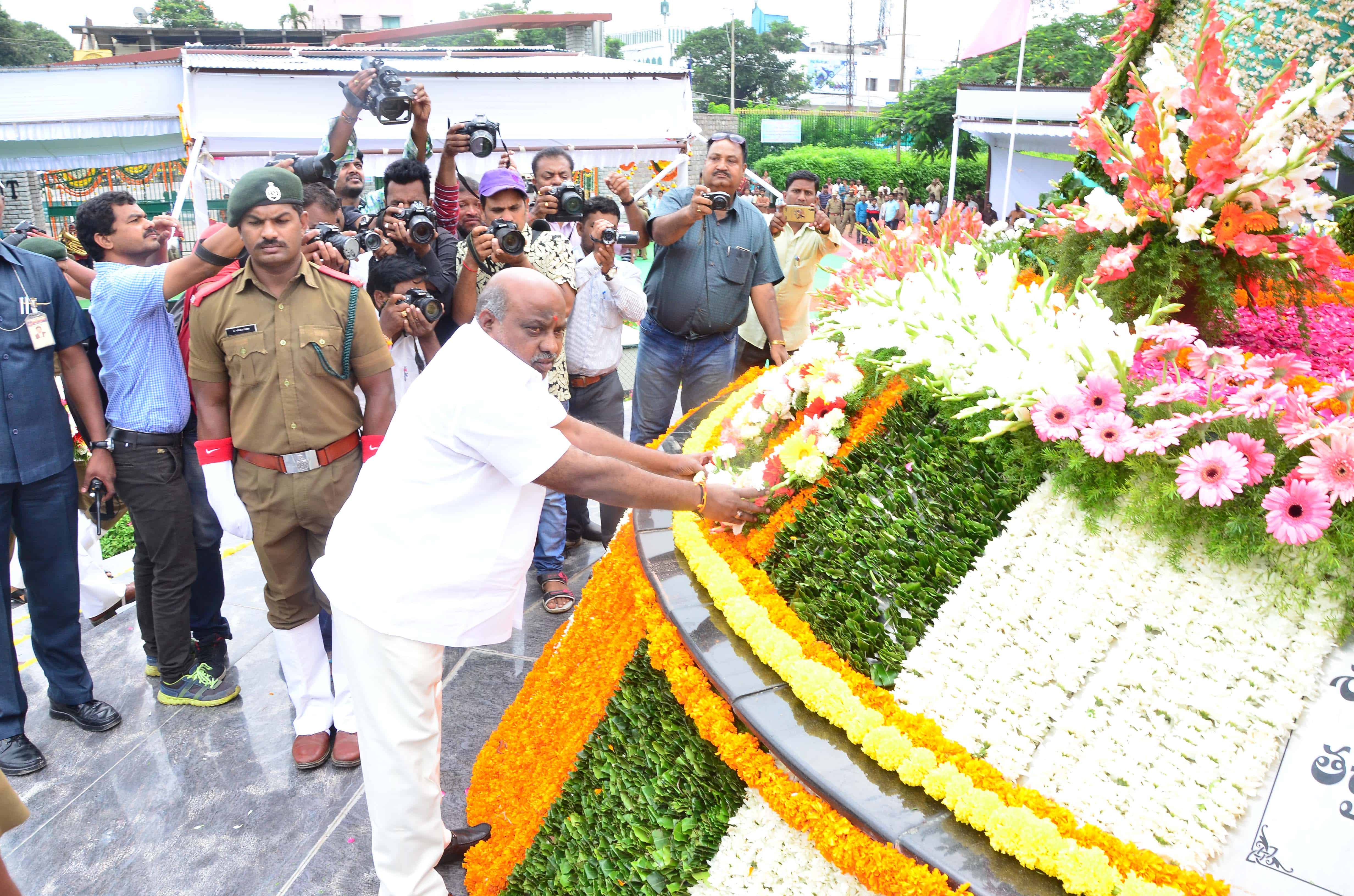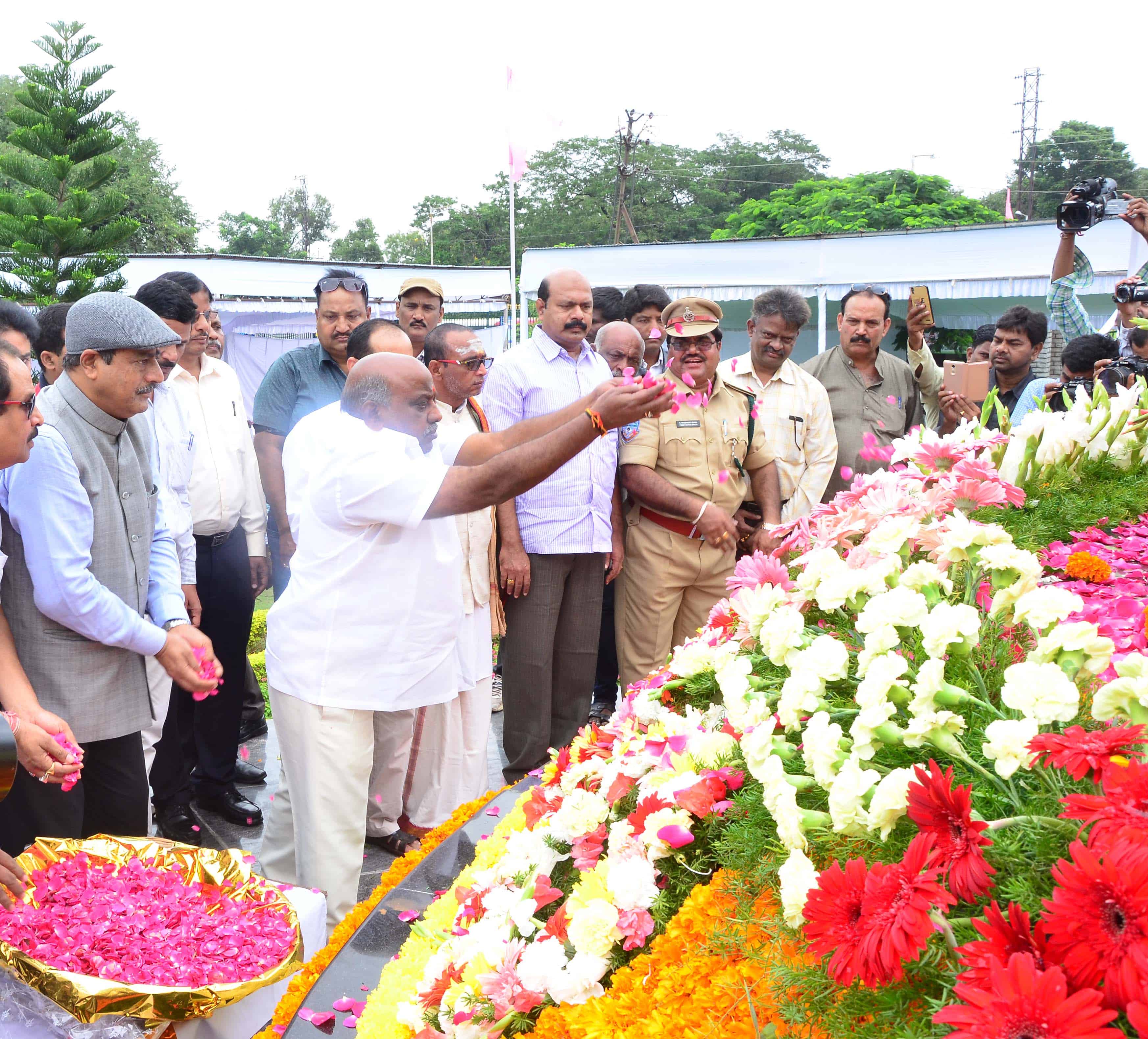 Minister for EFS&T, T.S., Mr. Jogu Ramanna officers paying floral tributes at Forest Memorial to mark Forest Martyr’s Day at Nehru Zoological park in Hyderabad .Photos:Laeeq