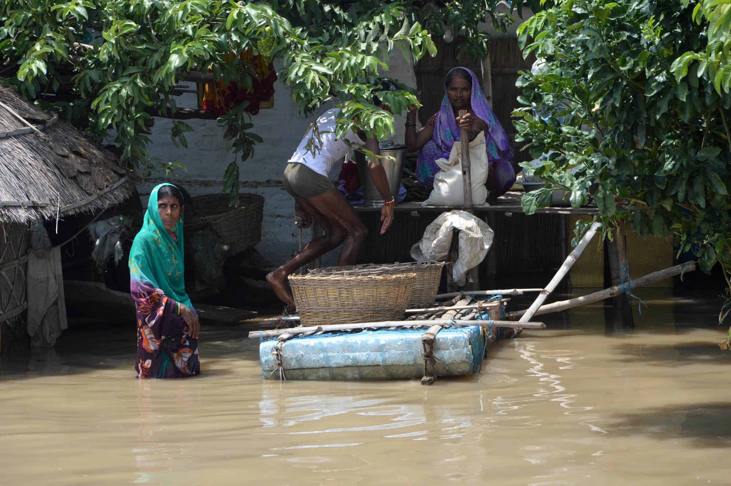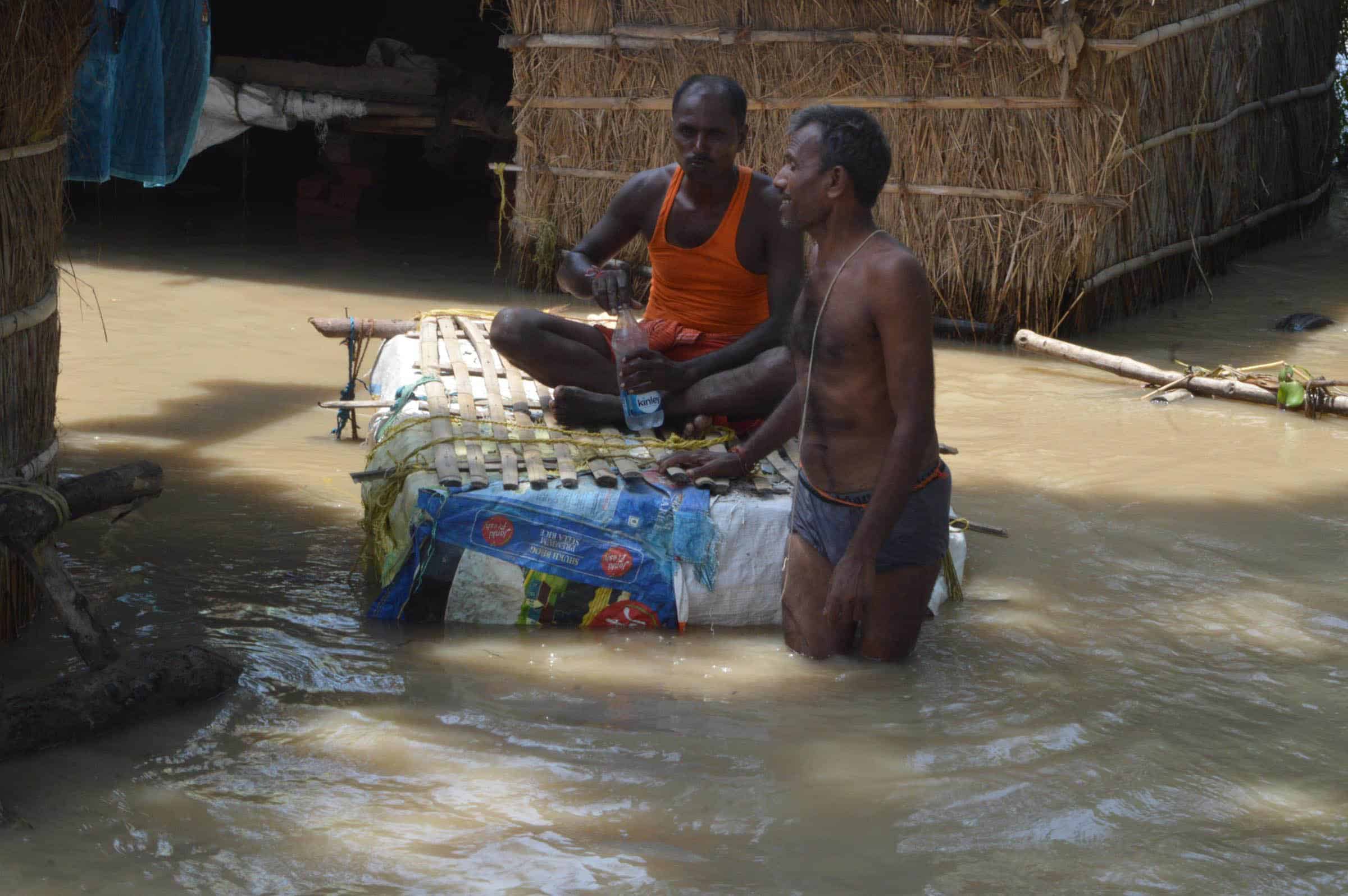 NAKTA DIYARA, AUG 21 (UNI):- Marooned people waiting for relief after their houses submerged with flood water of river Ganga in Nakta Diyara on Sunday. UNI PHOTO-61U