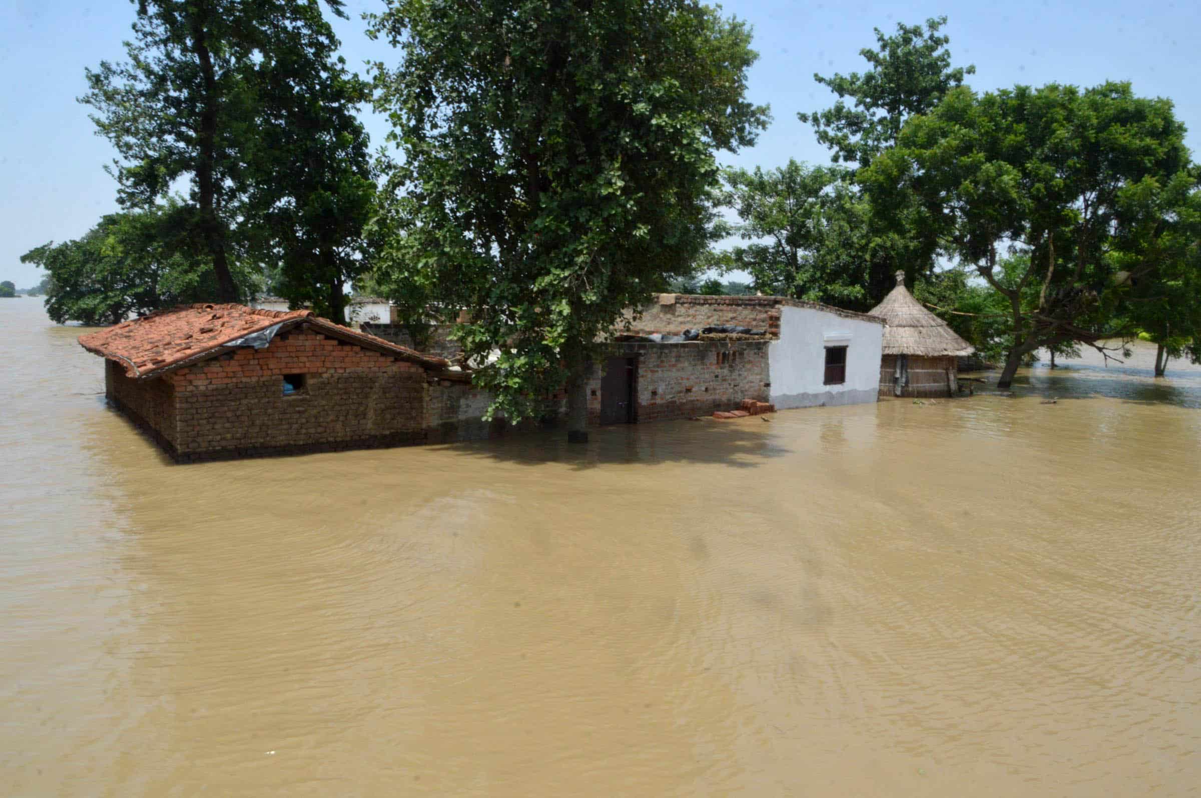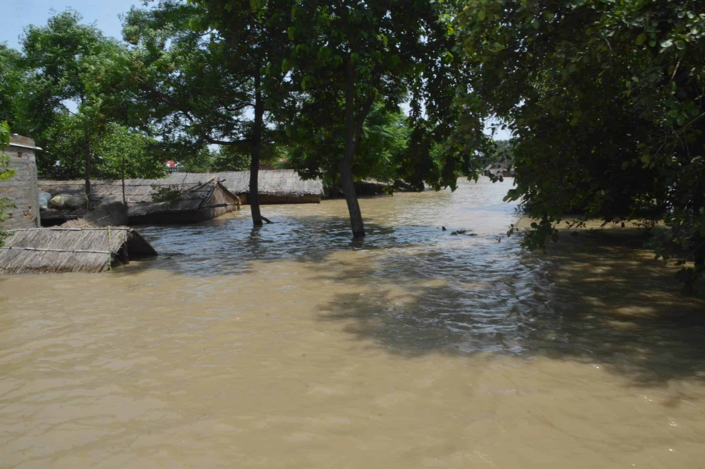 NAKTA DIYARA, AUG 21 (UNI):- Houses submerged with flood water of River Ganga in Nakta Diyara on Sunday. UNI PHOTO-57U