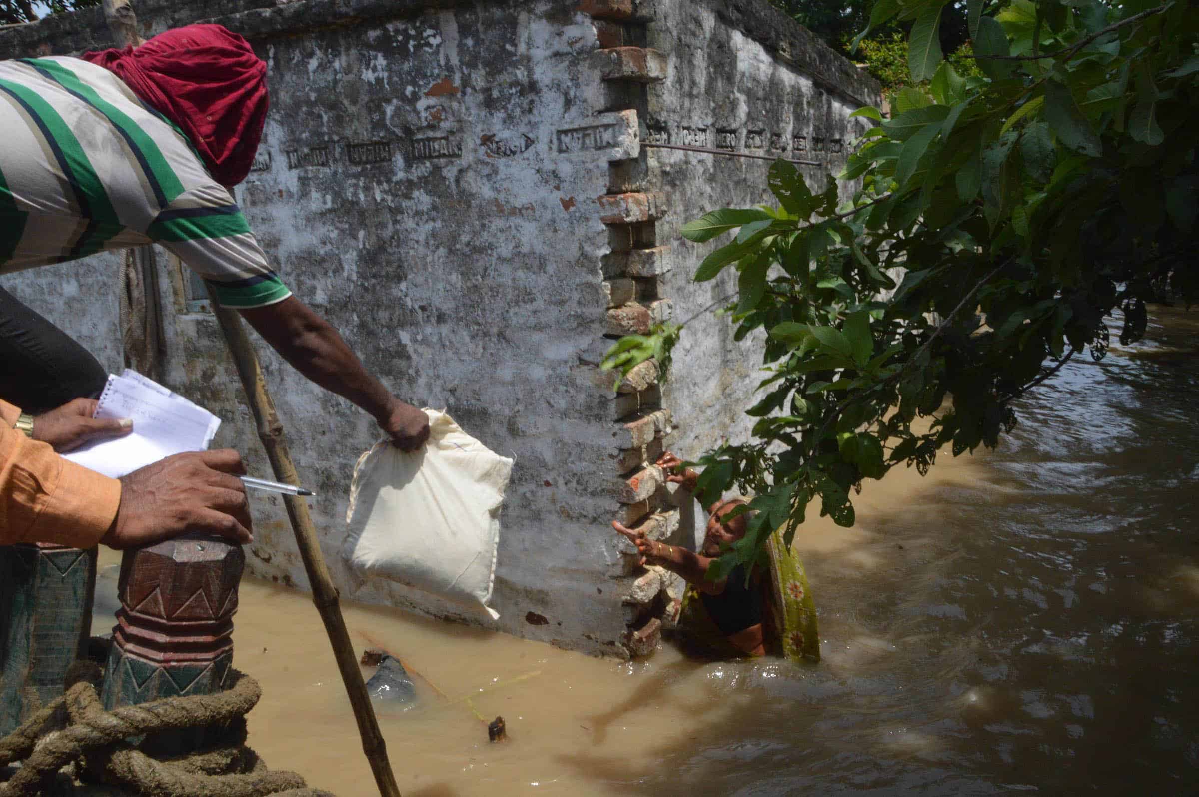 NAKTA DIYARA, AUG 21 (UNI):- A volunteers giving relief packet to a flood affected villager in Nakta Diyara on Sunday. UNI PHOTO-60U