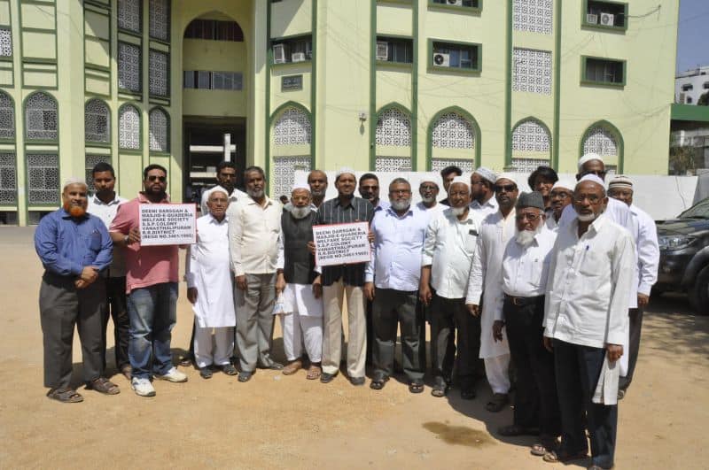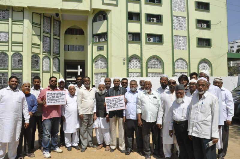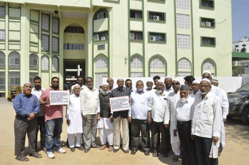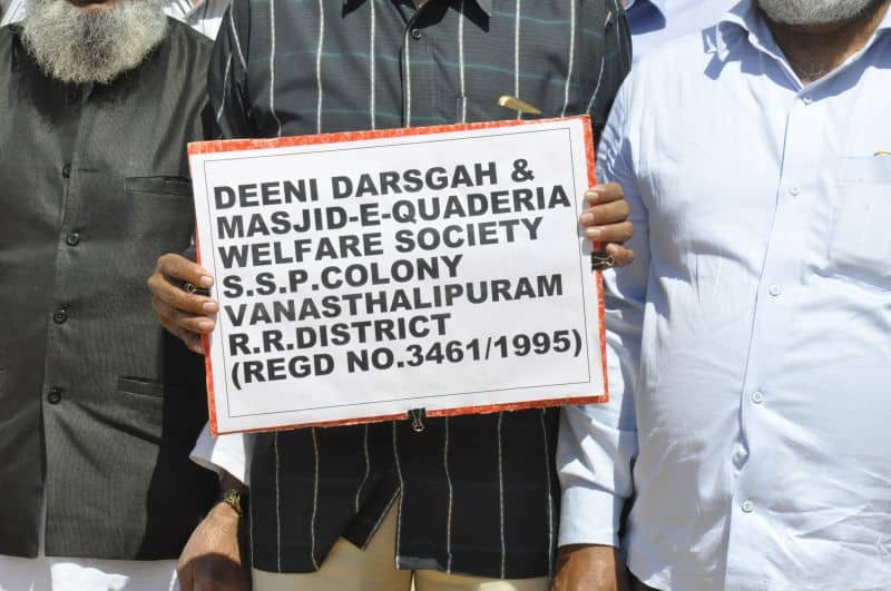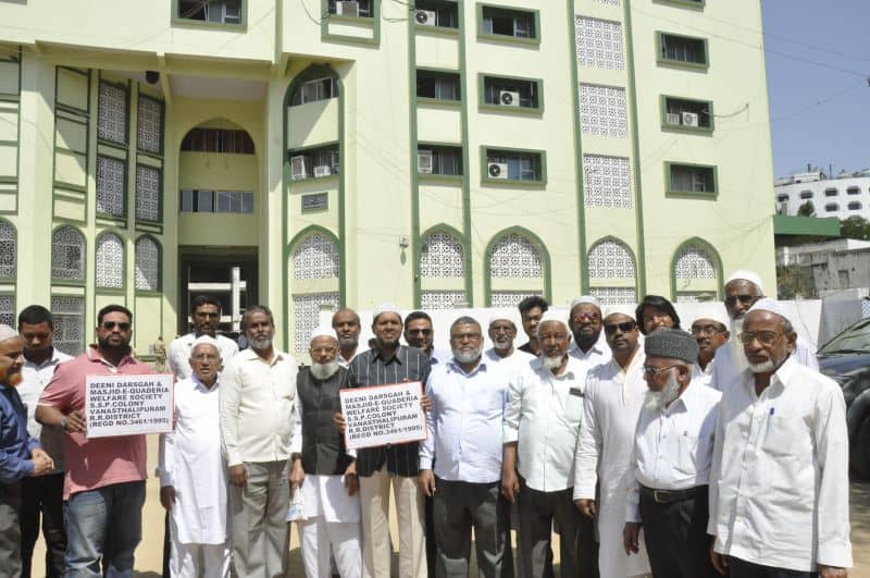 Committee members of Vanisthalipuram’s Deeni Darsgah and Masjid-e-Quaderia welfare society today protested inside the Wakf Board premises against derecognizing the old committee by the Board. (Pics. Mazher)