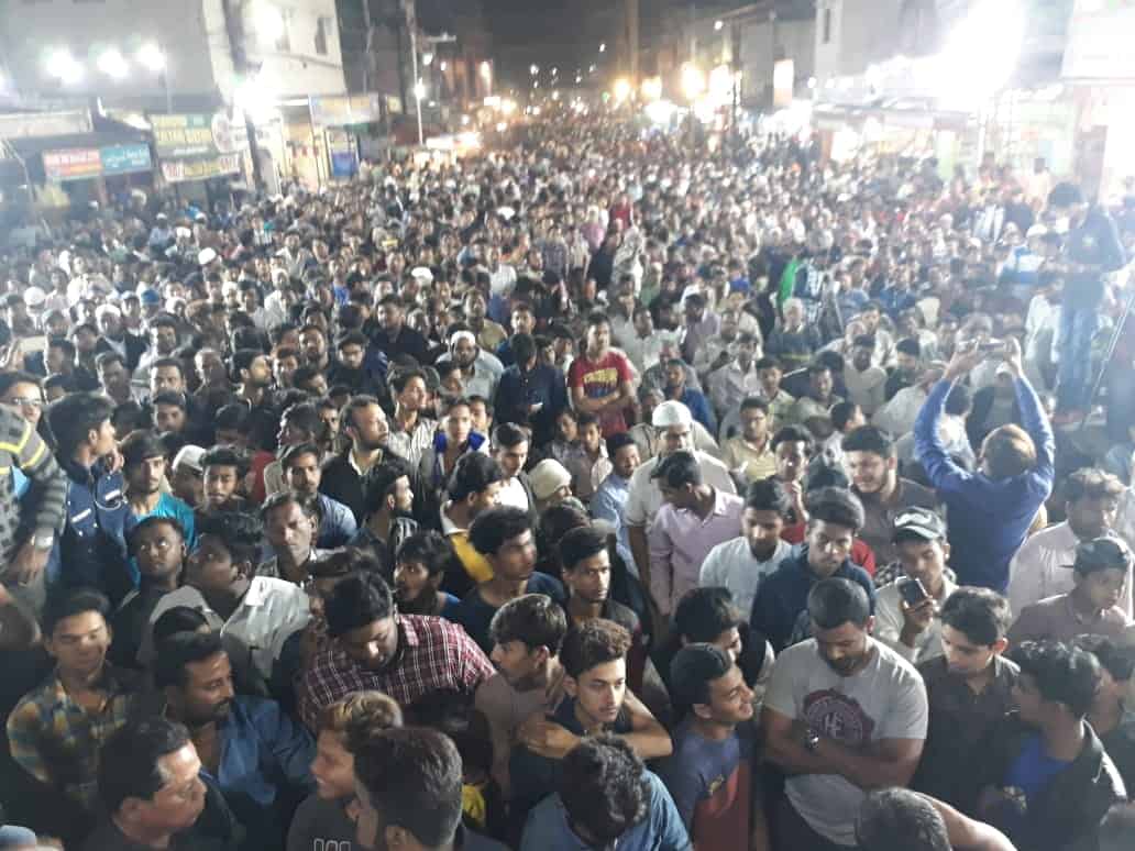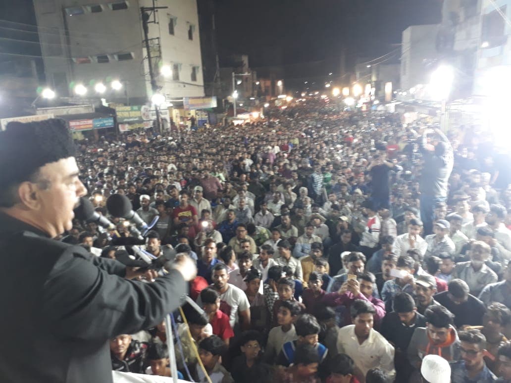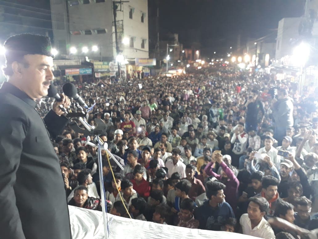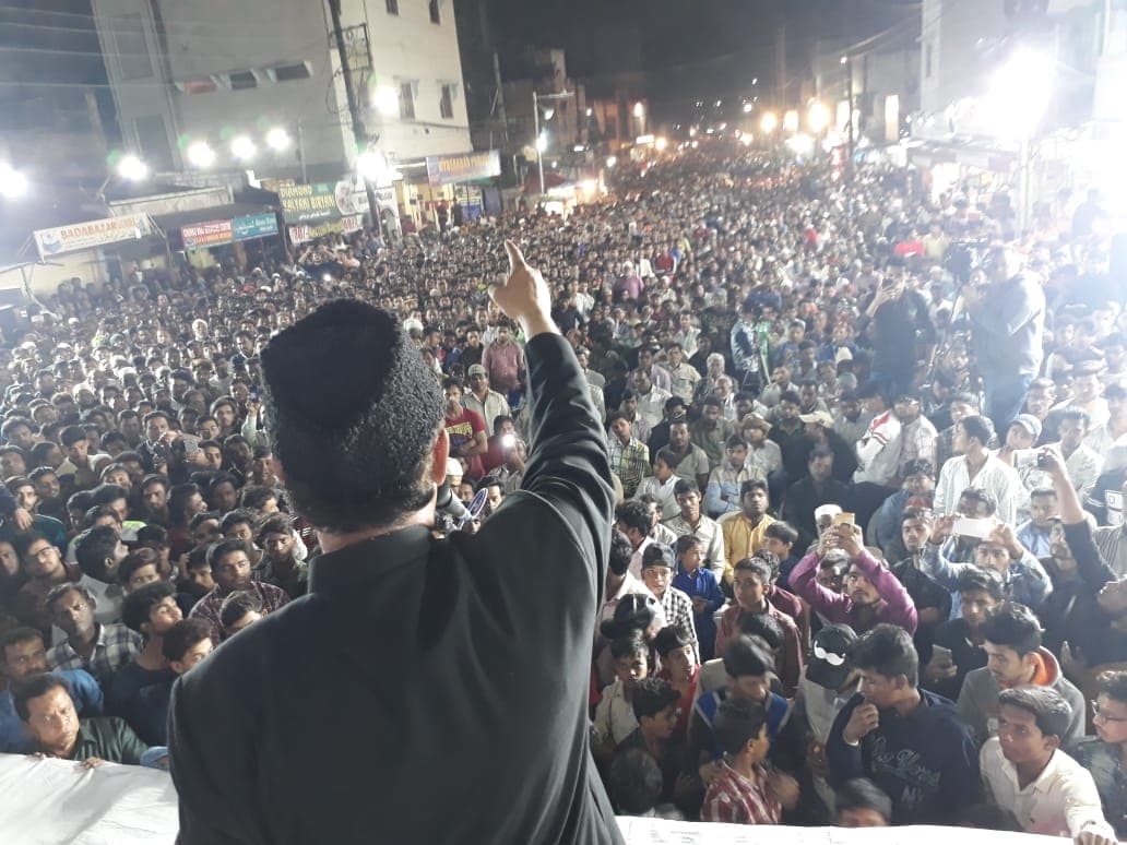 MBT President and Yakutpura Candidate Majeedullah khan farhat addressing a Massive Public meeting at Bada Bazar, Yakutpura. Photo: Mazhar