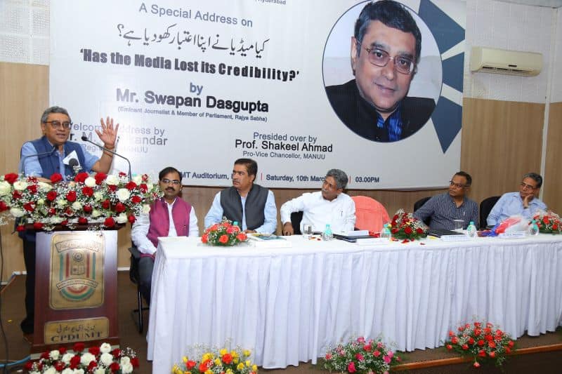Mr Dasgupta said that any restriction on media functioning was likely to be opposed by the owners because it would affect their profitability. “For the owners, running a media company is business, not charity… No one can control media except the viewer,” he told a large gathering of students, academics and others at Maulana Azad National Urdu University. His lecture, “Has the media lost its credibility?” was organized by the Department of Mass Communication and Journalism.