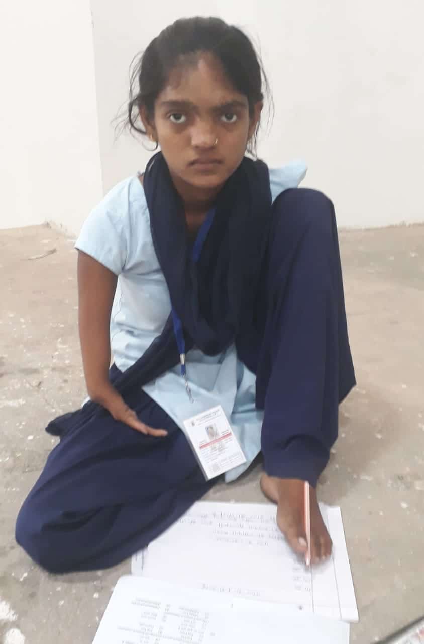 Chhatarpur: When life gives you lemons you turn around and make lemonade, so goes the adage. That is precisely what Mamata Patel did. Crippling disability rendered her hands as useless but that has not prevented Mamata Patel from pursuing her dream of an educational degree. She utilizes the toes of her feet to hold a pen and write.