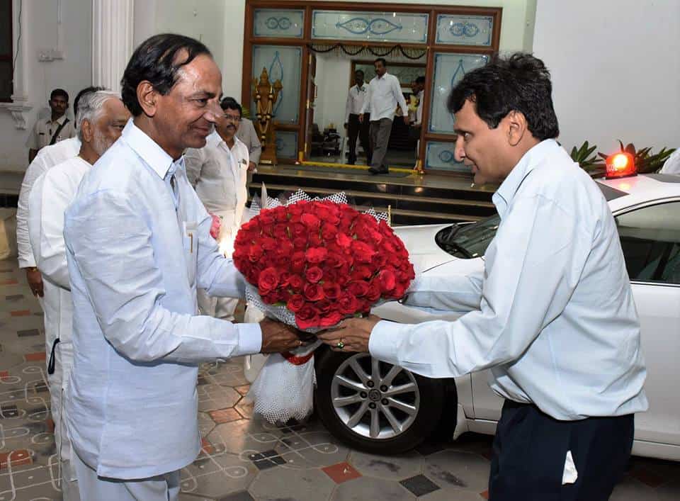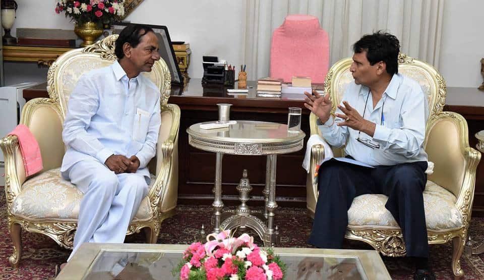 Union Railway Minister Suresh Prabhakar Prabhu called on Chief Minister K. Chandrashekar Rao at Camp Office on Sunday. (Photo: Zabi)